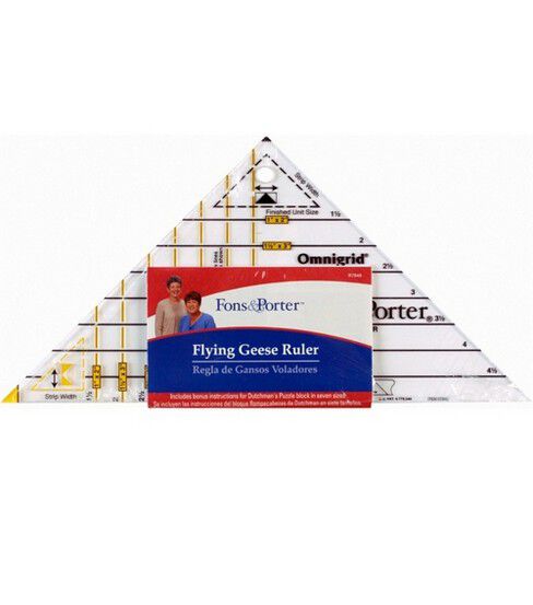 The Fons & Porter Super Flying Geese Triangle Ruler makes quilt crafting easier and simpler by eradicating the need to do guesswork on calculations. Specially made for the Flying Geese units, this quilting tool helps cut triangles in finished sizes from 1 x 2 inches to 4 x 8 inches. This ruler is designed in a way to help the quilter make both large goose triangles and six smaller sky triangles with ease from the strips of the same width.