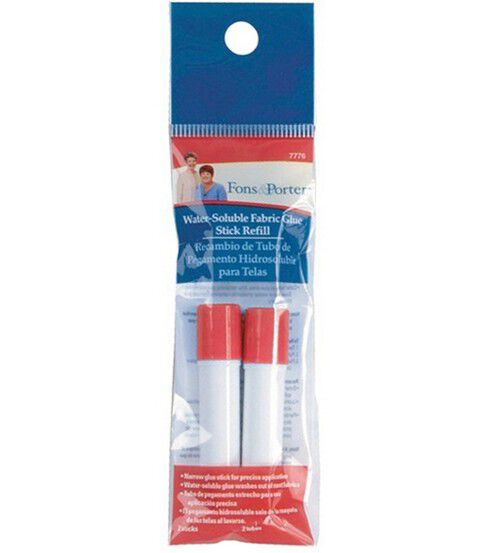 Use the Fons & Porter Water-soluble Fabric Glue Stick Refills to add a new lease of life to your fabric glue sticks. This refill pack contains two narrow water-soluble fabric glue markers which help in the precise application of appliques or embellishments onto fabrics. It leaves a blue mark on fabrics which helps you trace the exact spot of application. The color fades out as the glue dries up while any extra glue can be easily washed out with water.