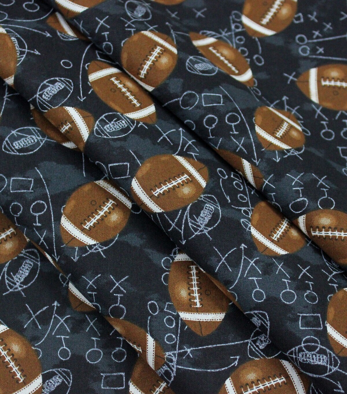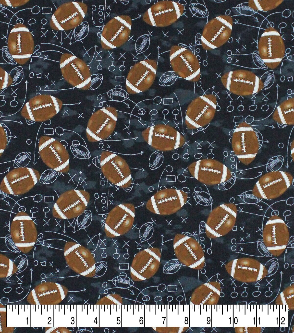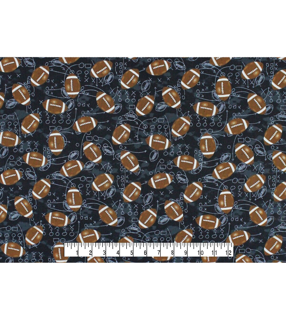• Footballs On Black Novelty Cotton Fabric
