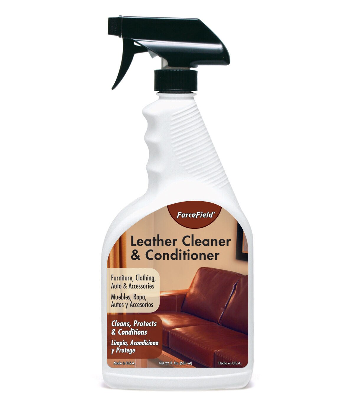 The ForceField Leather Cleaner & Conditioner cleans and conditions finished leather goods, extending the life and beauty of the leather. It is specifically formulated to provide leather accessories, automobile leather and interior furnishings with the highest quality leather care available. this cleaner and conditioner cleans even stubborn stains and dirt and restores the natural appearance of leather by replenishing essential oils to leather. You can use it to hide scratches, cracks and scuffs.