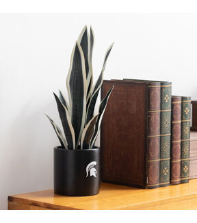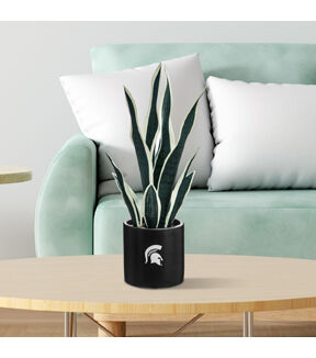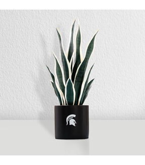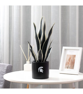 Show your school spirit in your space with our Michigan State University faux Snake Plant. It's a perfectly realistic choice, with its long, slender leaves and life-like appearance. In addition to being a nice decoration for your home or office, this fake potted plant is also a practical option for those with allergies or limited space as its doesn't produce any pollen or require much space. Standing in 17 inches height, it is decked out in accurate green and white foliage. The sword-like leaves that extend in different directions are also adjustable and you can fluff them to the shape you want. For easy styling, our unique snake plant comes pre-potted in a 5-inch black ceramic base pot with the Spartan logo printed on it. Add some life to your home décor with this beautiful MSU fan item. Not only is it perfect for game days and tailgates, but it also makes a great addition to any man cave or Spartan merchandise collection. Perfect as a fan gift, give it to any MSU fan, alumni, or football enthusiast that you know.