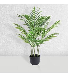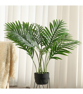 Now you can have the real tropical feeling of a tree indoors! Create the perfect natural vibe in the comfort of your own home with our artificial palm trees. Standing 24 inches tall, these beautiful fake trees are ideal for any room, be it your home, school, office or any other. They are crafted with silk and realistic greenery, giving them an undeniably eye-catching and life-like appeal. There's no need to worry about watering this beautiful faux tree or finding the suitable spot for it - simply set it up wherever you choose to enjoy its beauty! Our palm tree comes nestled in a 5-inch round black base pot, but you can easily replace it if you wish to match the decor of your home. This majestic artificial tree for home decor is an effortless way to add a sense of paradise into your living space. Look no further and add a touch of paradise into your home with our artificial palm tree!
