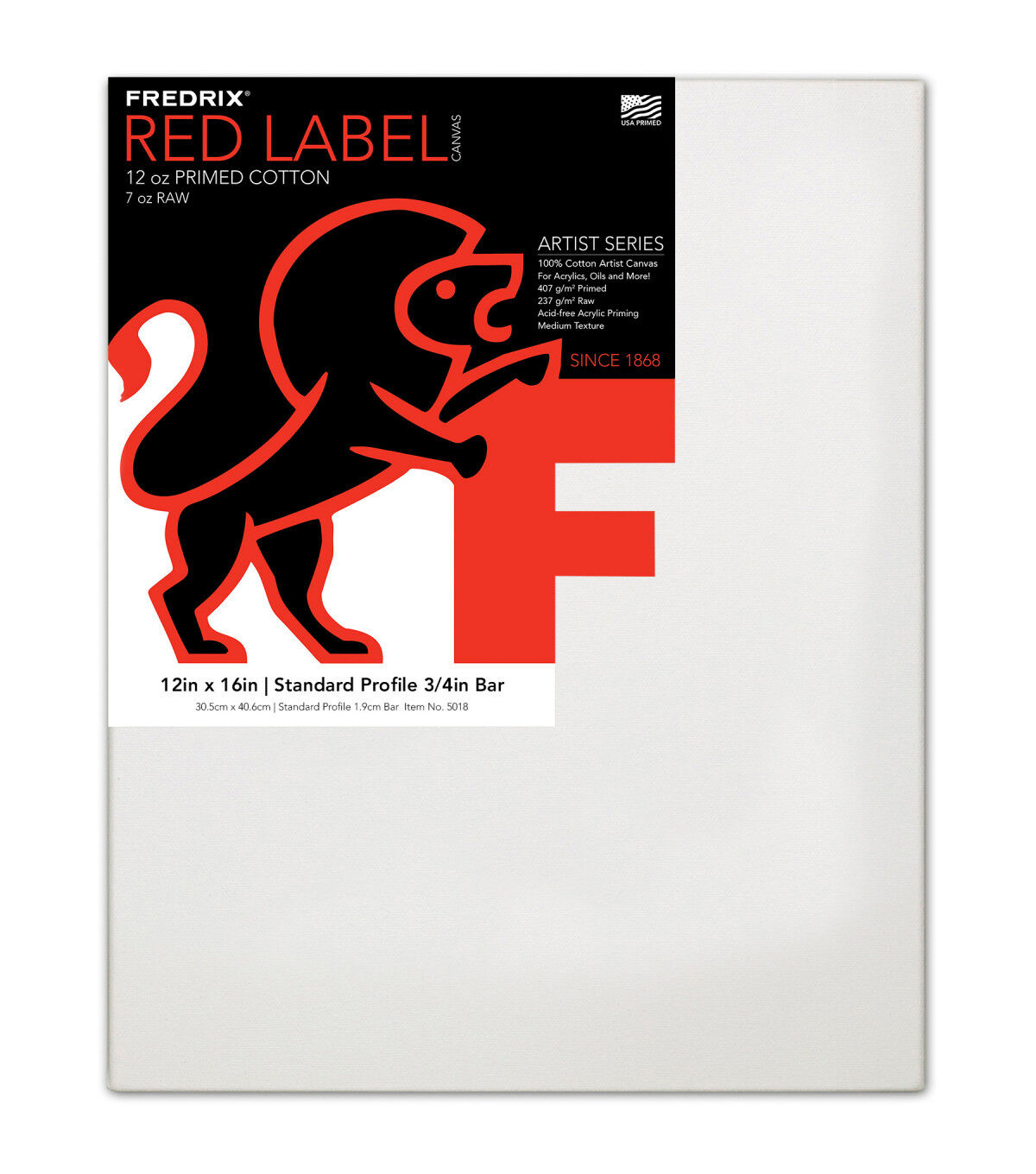 FREDRIX Red Label Canvas is made with superior quality, medium texture, 100% cotton duck canvas #569 which is 12 oz. primed, 7 oz. raw. Double-primed just north of Atlanta, Georgia, with an acid-free acrylic titanium gesso for professional results.