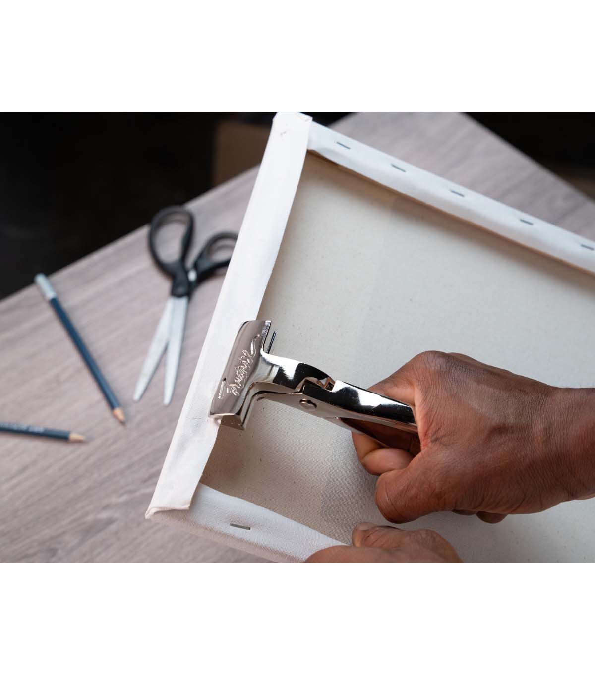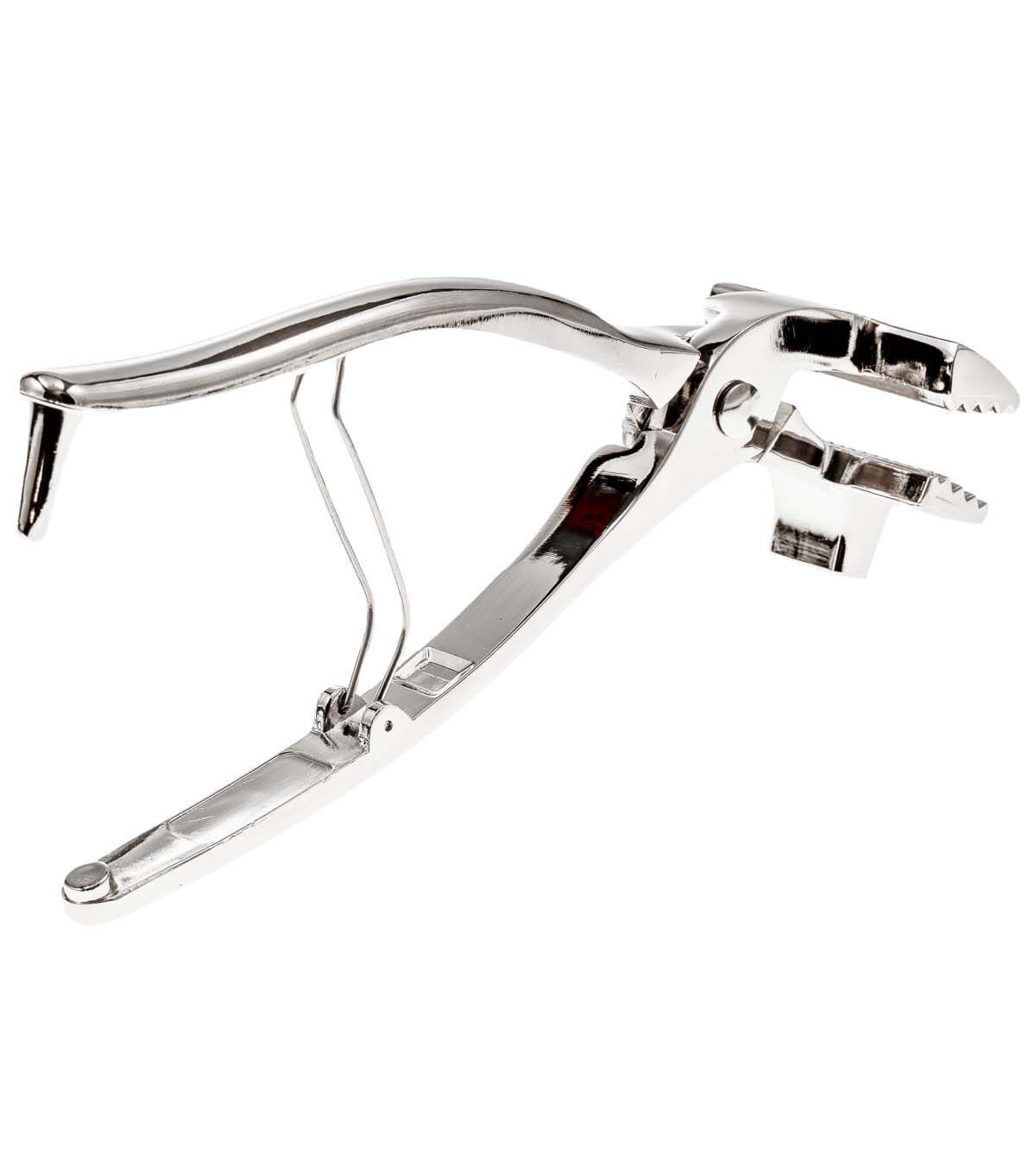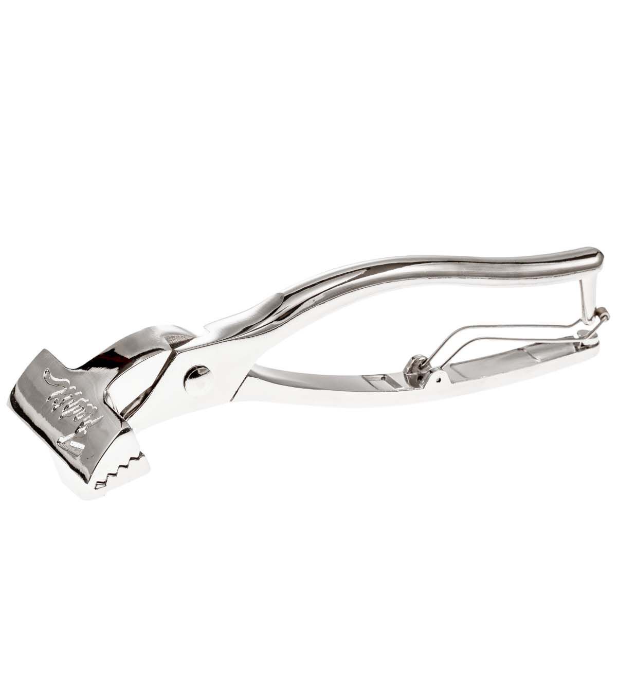 Fredrix Canvas Pliers are made of chrome plated steel. Ideal mating teeth ensure a positive no-slip grip. The 4-3/4" bite has a soft grip, rather than metal teeth. The handle has a built-in spring return that opens the pliers when you release.