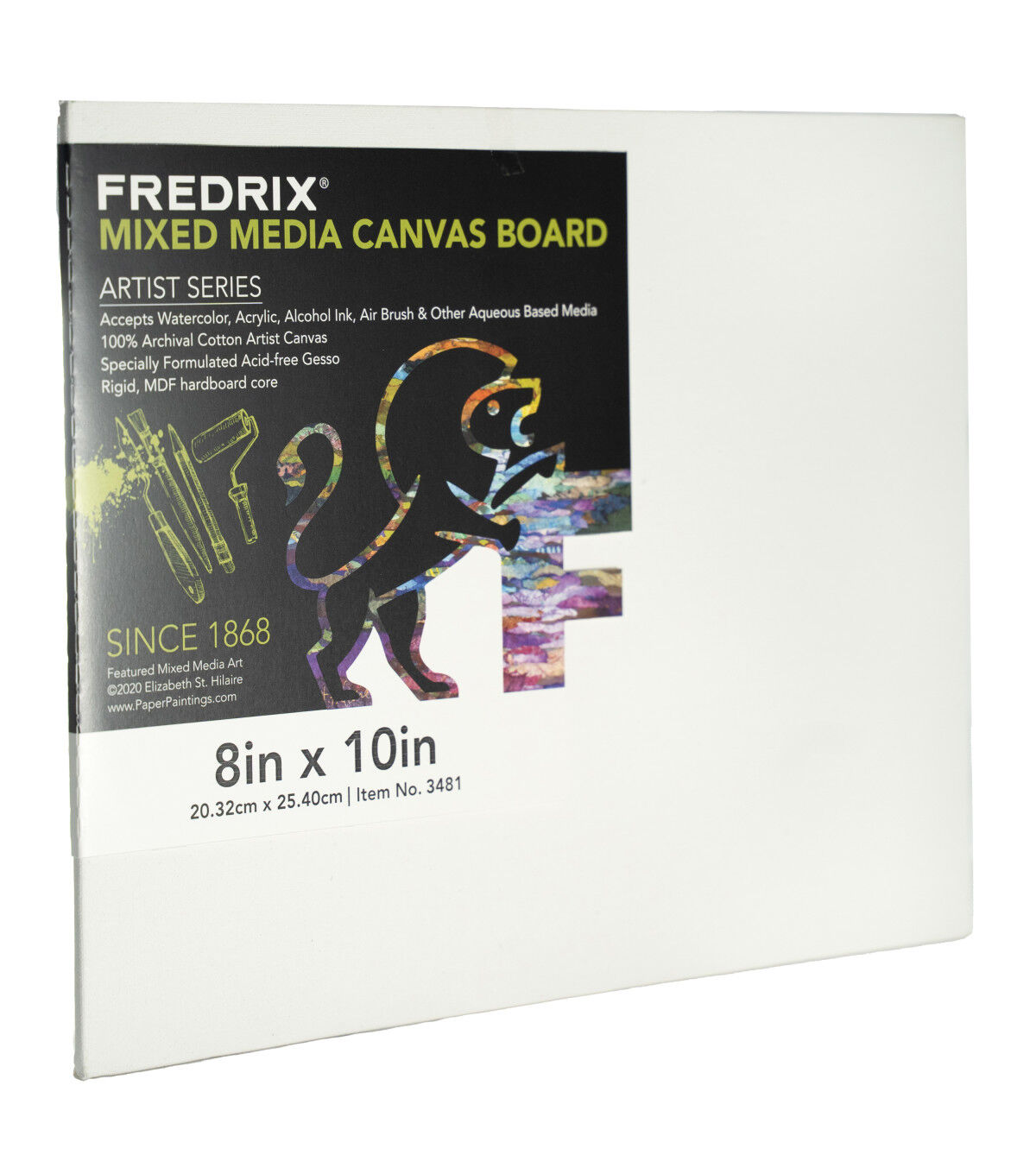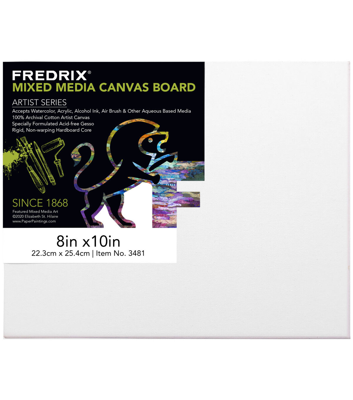 FREDRIX MIXED MEDIA Archival Canvas Board is a 100% Cotton artist canvas which combines the texture of a natural, woven fabric with a specially formulated gesso designed for all water-based paints. It will not tear like paper and you can lightly lift out pigment or completely wash out your painting surface without damaging the canvas surface. We have double-primed our ARTIST SERIES MIXED MEDIA canvas just north of Atlanta, Georgia, with an acid-free absorbent grounds based titanium gesso for professional results.FREDRIX MIXED MEDIA Archival Canvas Boards, 7.7oz primed / 6 oz raw 100% Cotton, USA PRIMED.