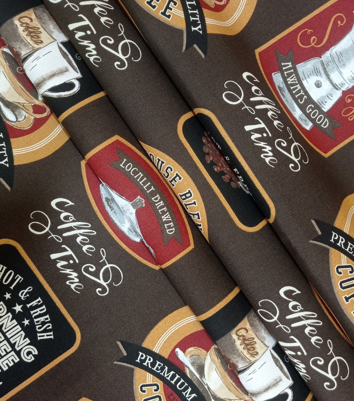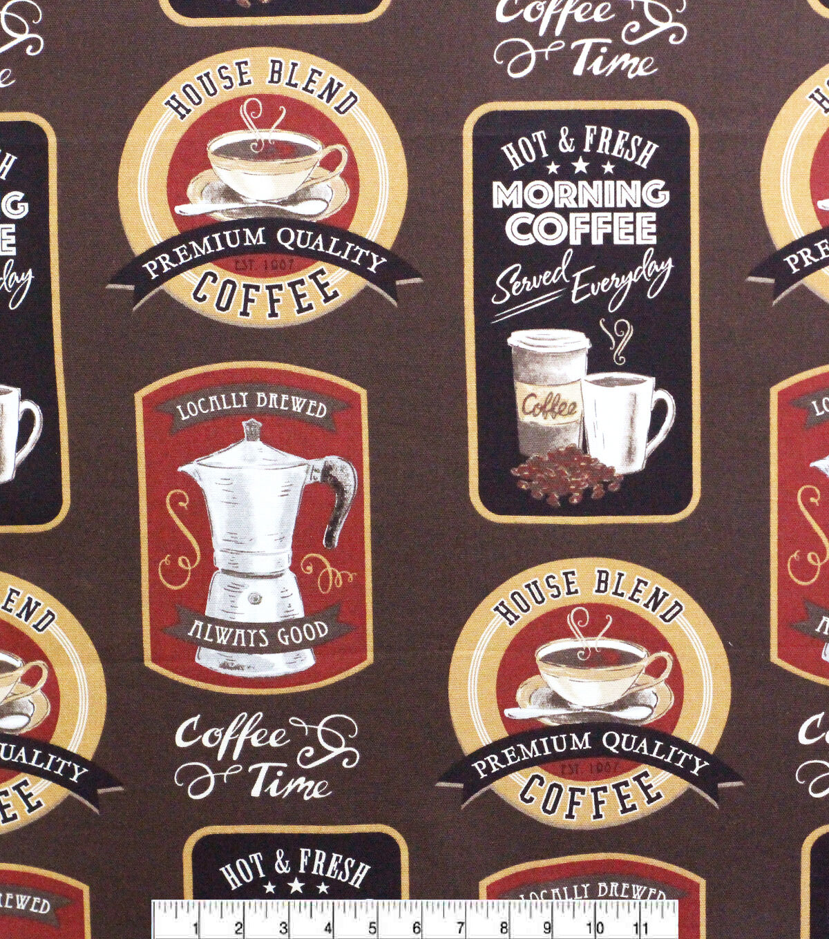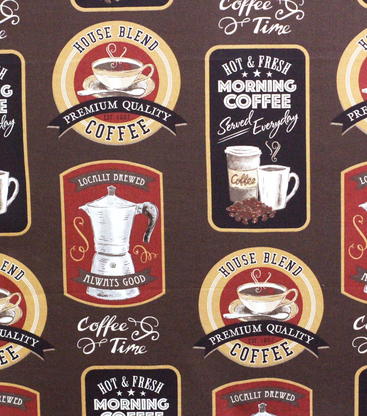 French Press on Brown Cotton Canvas Fabric