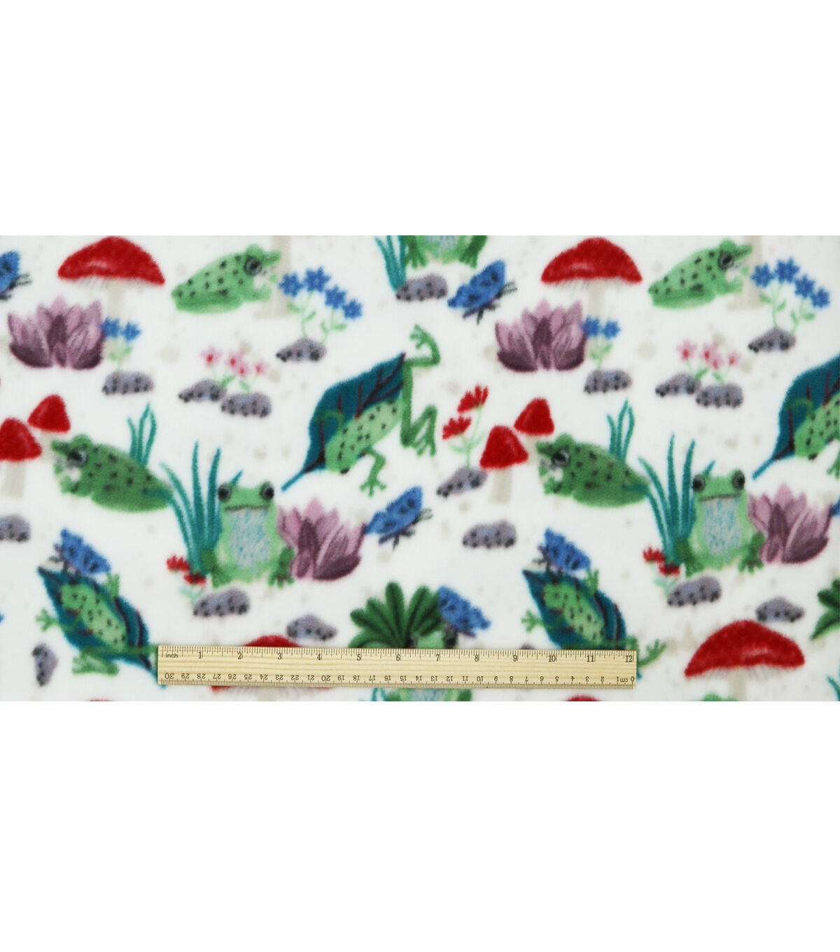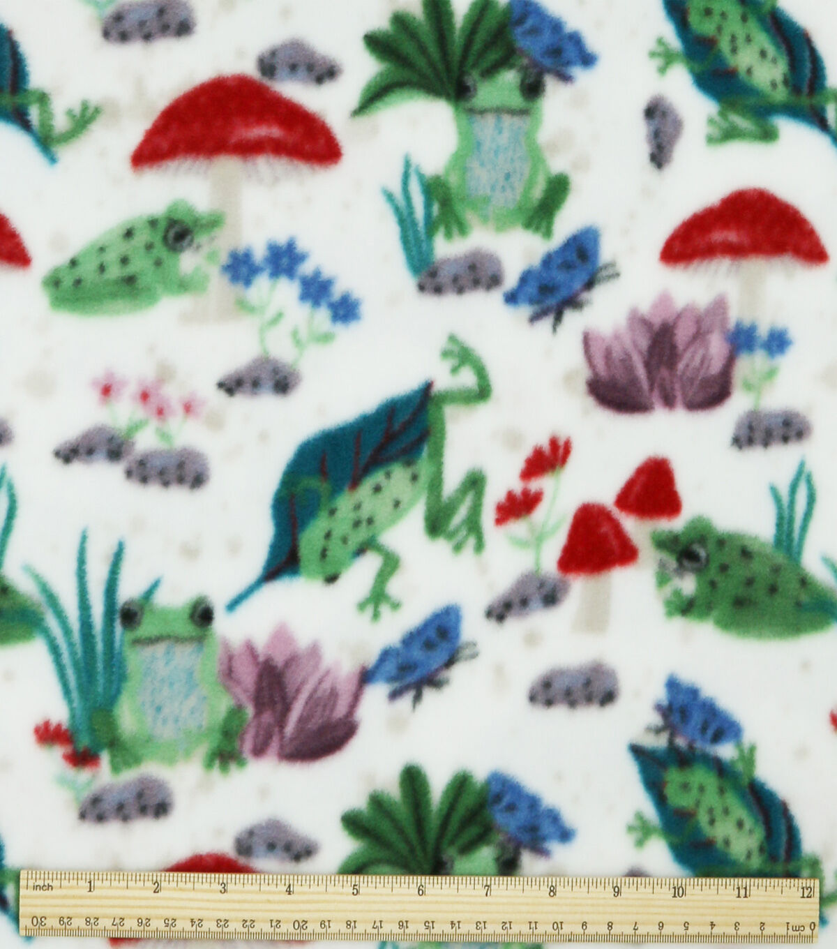 • Frogs & Mushrooms on White Anti Pill Fleece Fabric