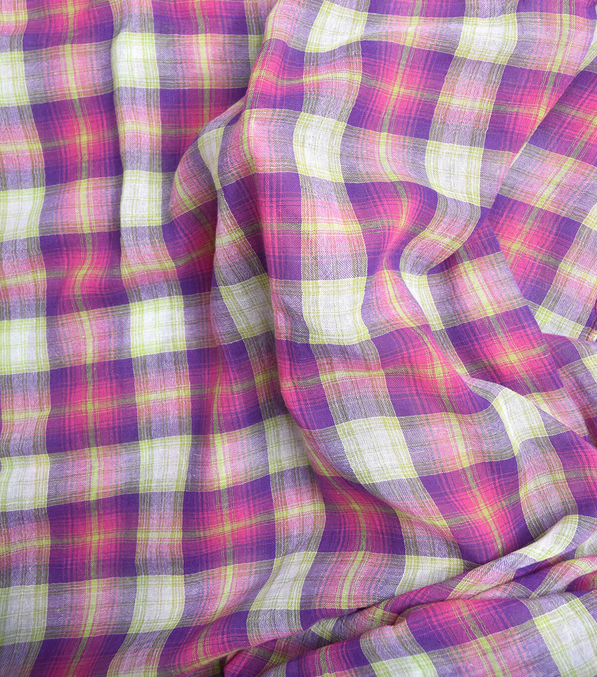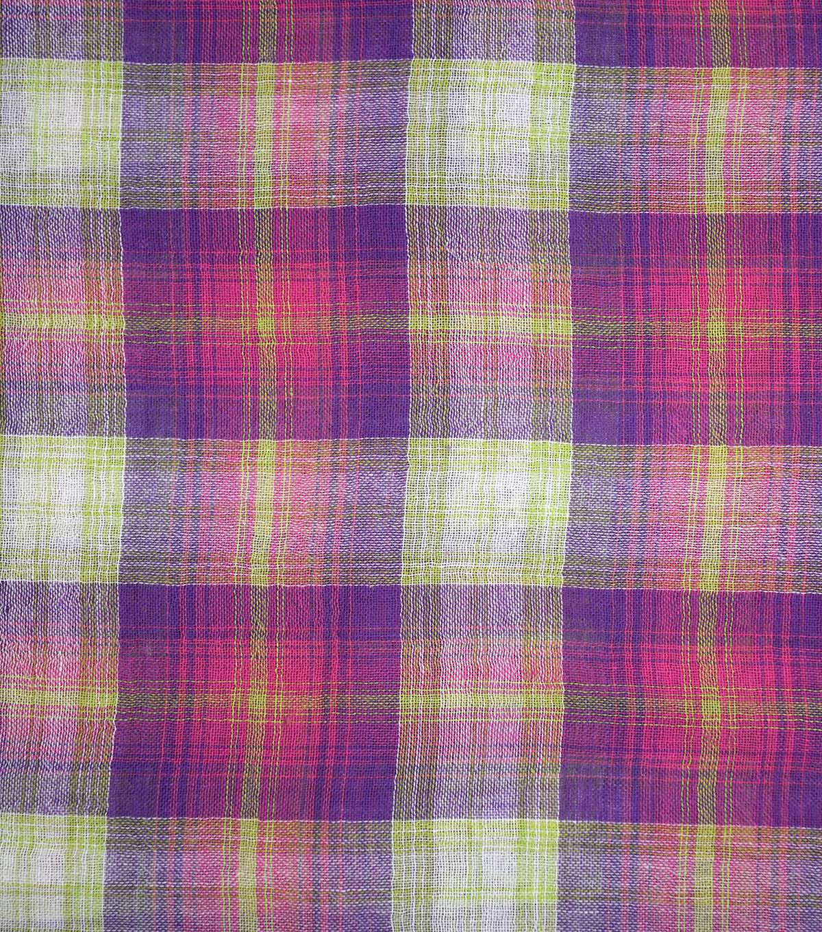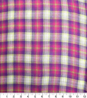 Fuchsia Sheer Gauze Plaid Shirting Fabric