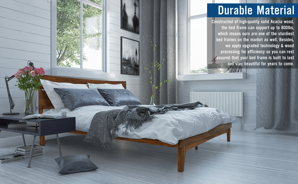 • Our platform bed is made of sustainable solid acacia wood for maximum durability with strong locking system, bringing the stability and sturdiness needed for utmost comfort and your uninterrupted slumber