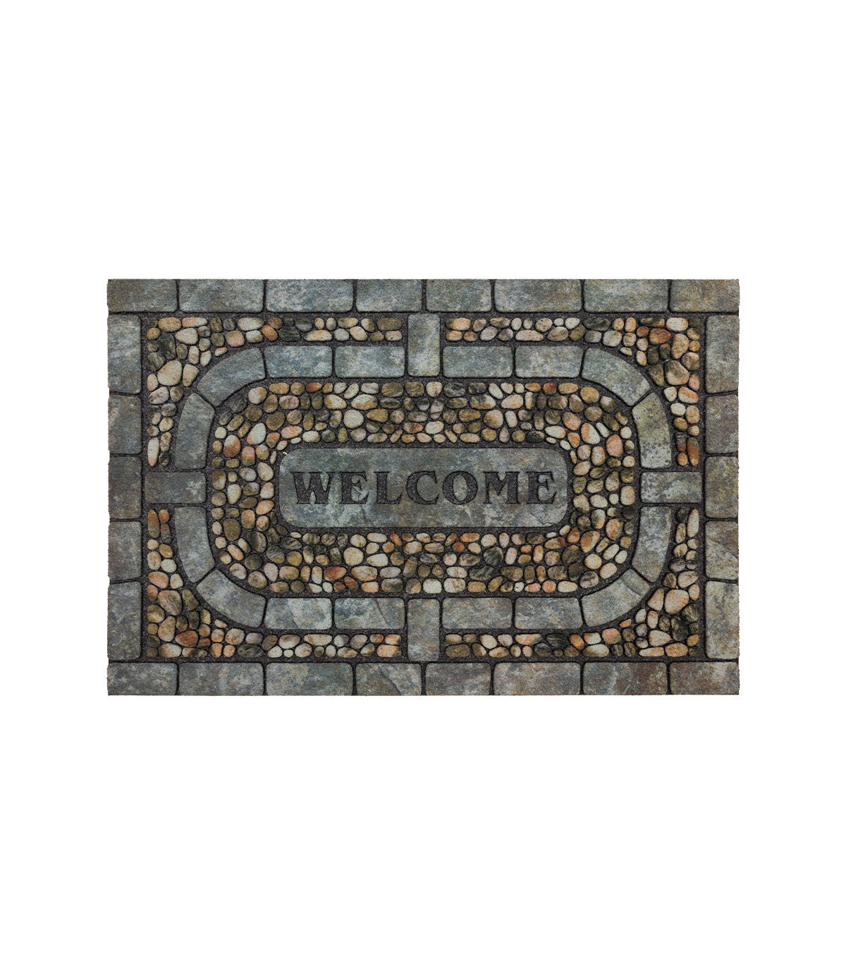 Dress your doorway in style with Mohawk's Garden Pebbles Estate Doormat in grey. Environmentally friendly, this doormat is backed with the dependable durability of 1 percent recycled rubber, one of the largest and most hazardous types of post-consumer waste. Annually Mohawk recycles over 3 million pounds of rubber tires and gives them new life as designer doormats. The recycled rubber doormats of this collection have a high definition decorative top surface design constructed of a 1 percent polyester flock. This top surface absorbs moisture and is ideal for scraping dirt from shoes before its tracked indoors.
