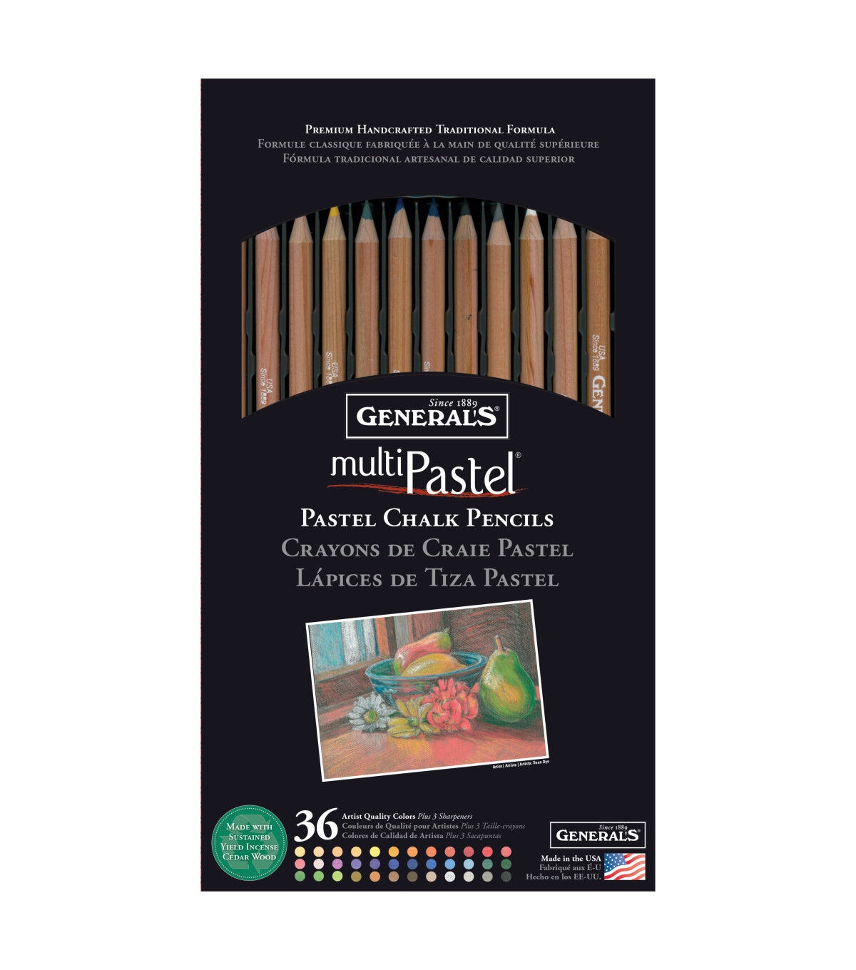These General's MultiPastel Chalk pencils have been handcrafted using only the finest artist pigments since 1926. They are extra smooth, blendable, acid and oil-free. The rich, creamy colors blend together effortlessly with your finger or a blending stick. Overlay details, add dimension to watercolors and utilize these pencils in any mixed media design.