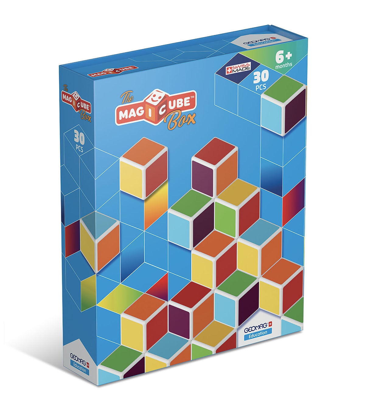 Magicube is a range of products which revolutionizes the Junior Construction category. This innovative toy is a construction system based on magnetic cubes that attach to one other on all six sides. By using the invisible and magical properties of magnetism, children are able to let their imagination fly and create different shapes, color combinations and even 3D structures. Children are at the heart of Magicube, a toy that comes to life with their creativity and allows even the youngest of them to develop their first manual skills with each cube. Includes 30 magnetic rainbow colored cubes.