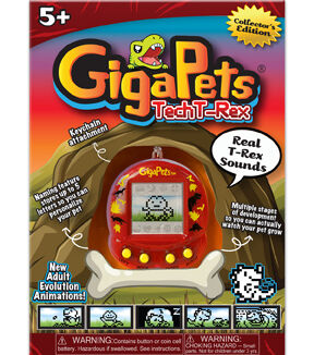 The GigaPets Tech T-Rex take-it-anywhere interactive pet that needs your love and attention! This toy challenges you to raise a baby dinosaur into a ferocious adult T-Rex. Just like a regualr pet you have to feed your T-Rex, play with them, clean up after them, even take care of them when they are sick! The happier and healthier your T-Rex grows the more you will score!