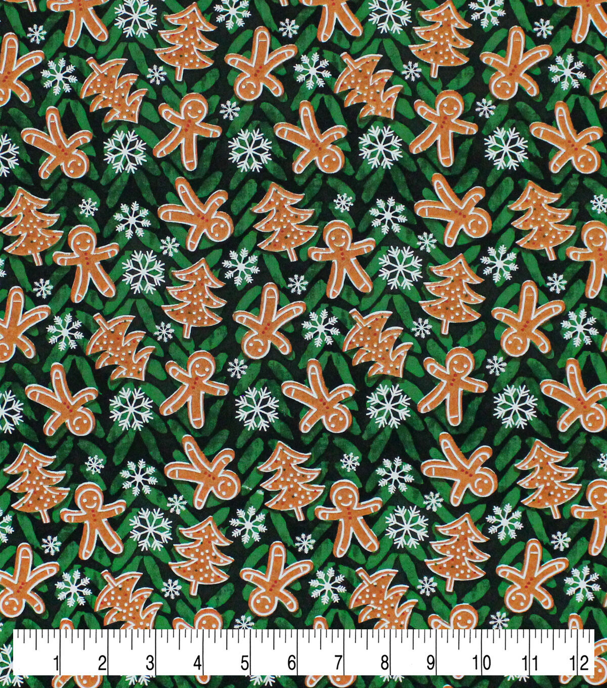 • Gingerbread Cookies & Snowflakes Christmas Cotton Fabric
