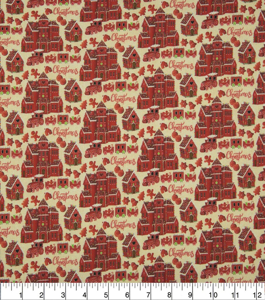 Gingerbread Village Christmas Cotton Fabric