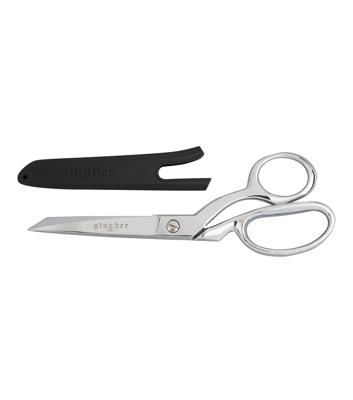 Gingher Serrated Knife-edge Dressmaker Shears feature a serrated blade that gently grips fabric so the knife-edge blade can make a clean, precise cut through smooth, lightweight fabrics as well as through multiple layers of heavier fabric. Their double-plated chrome-over-nickel blade finish is both striking and durable. A bent handle design helps hold fabric flat on your worksurface for smooth, comfortable, mistake-free cutting. These shears also include a protective nylon sheath for storage.