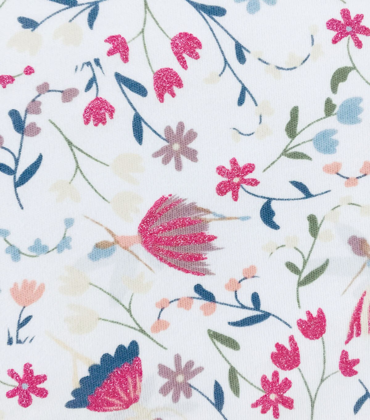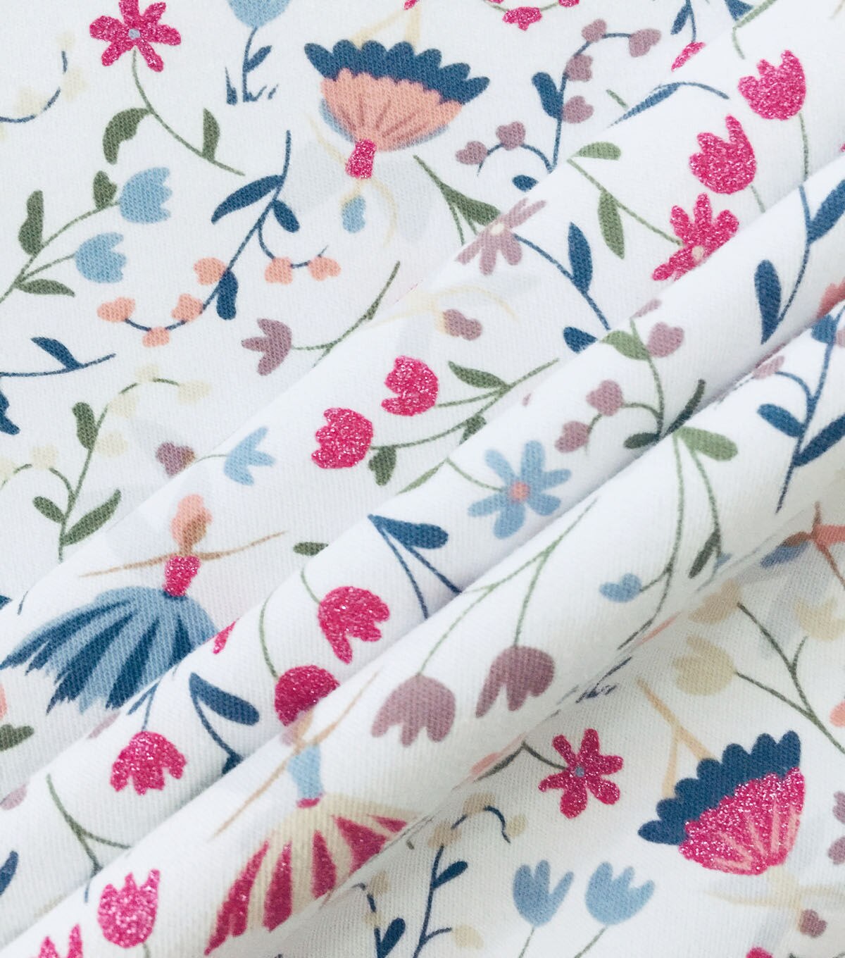 The power of cotton is an almighty force for kids attire. Our cotton spandex interlock is a thicker fabric that's durable and naturally comfortable. Plus with breathability and slight stretch, children's tops and dresses are free-moving during play time. Choose from various designs like these glittery chic garden fairies, and you have a loving sewing project for awesome practicality and personality.
