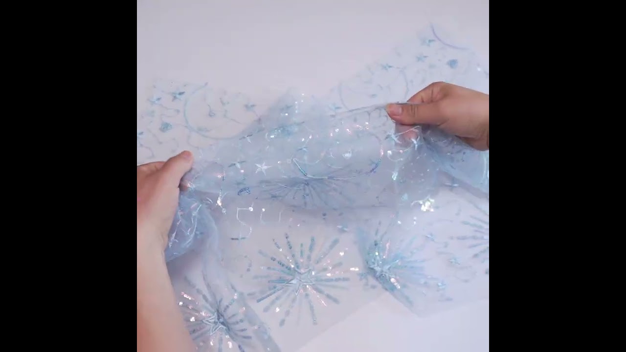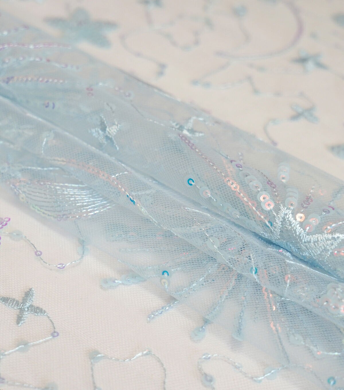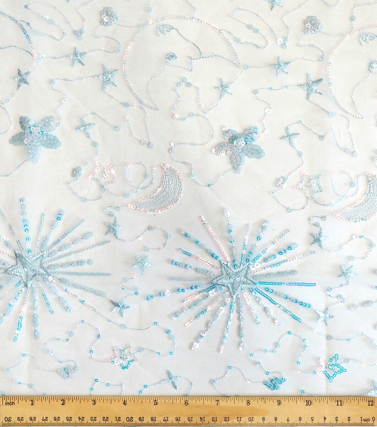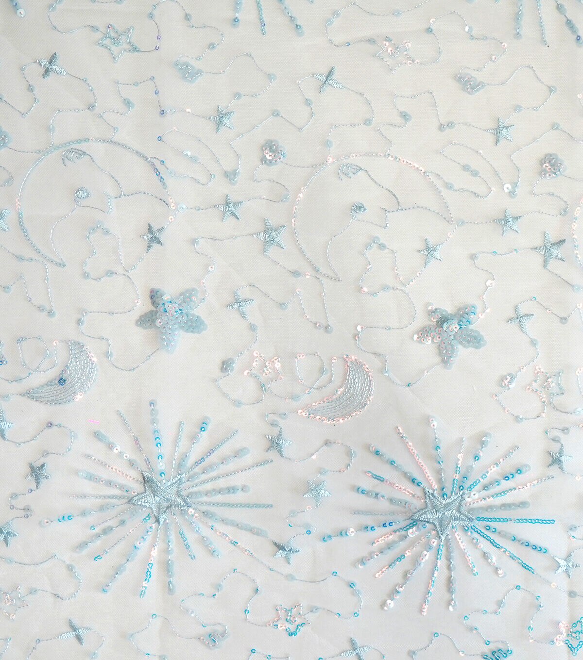 • Glitterbug Blue Celestial Print On Mesh Apparel Fabric