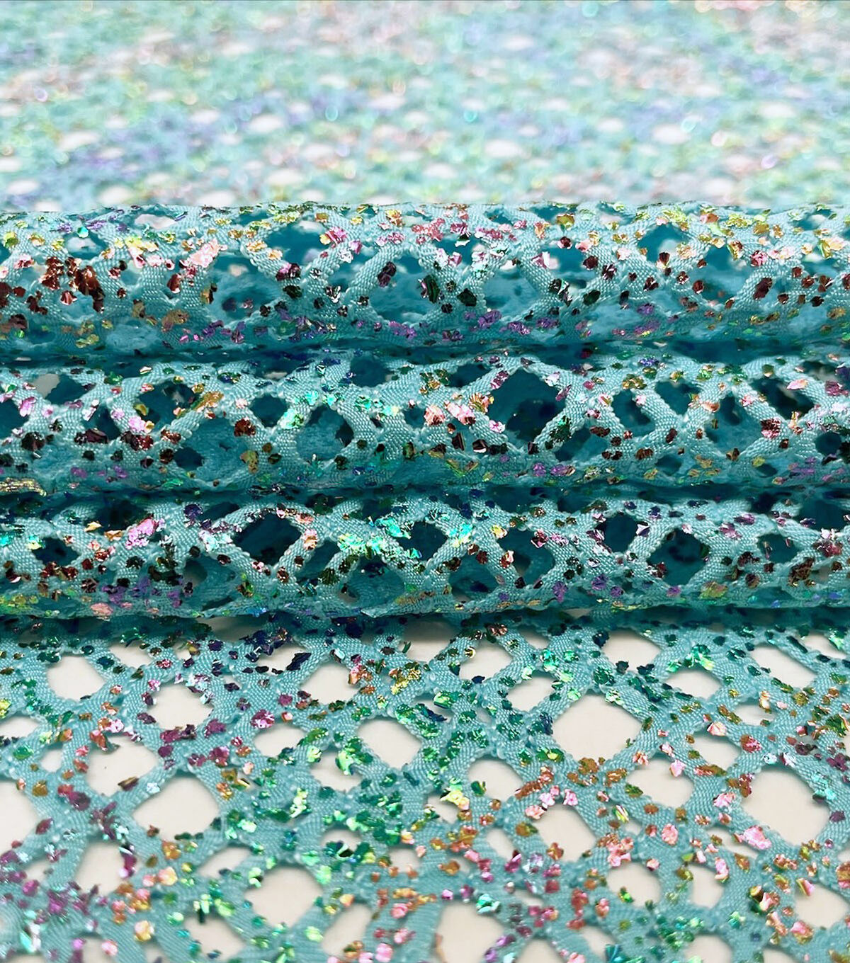 Sparkle and Shine with Glitterbug Green Metallic Stretch Netting Fabric
