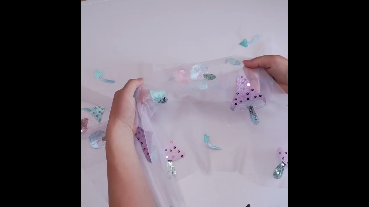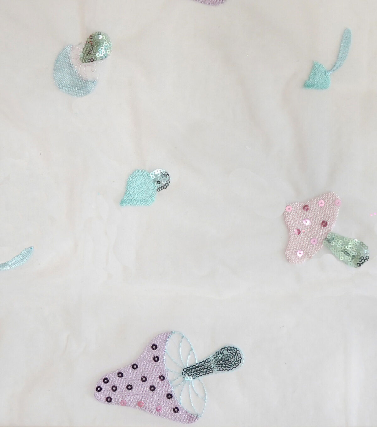 • Glitterbug White Mushroom Embroidery With Sequins Mesh Apparel Fabric