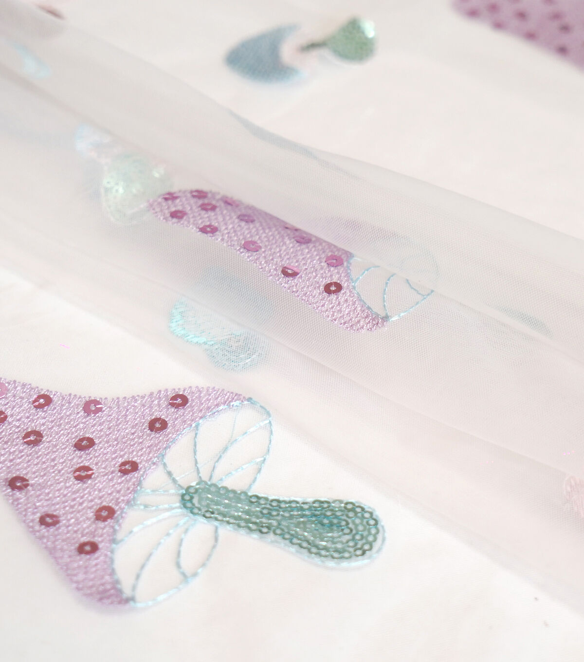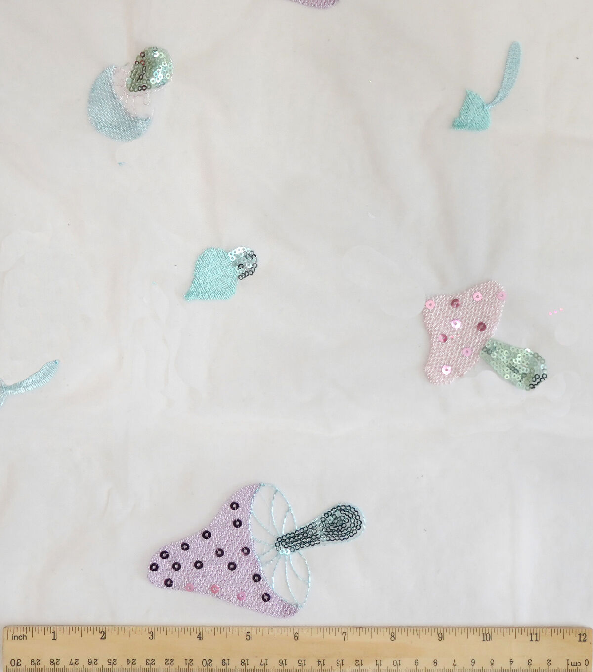 Glitterbug White Mushroom Embroidery With Sequins Mesh Apparel Fabric