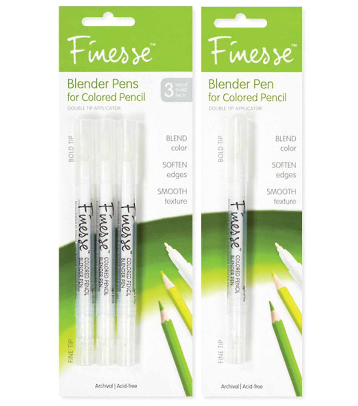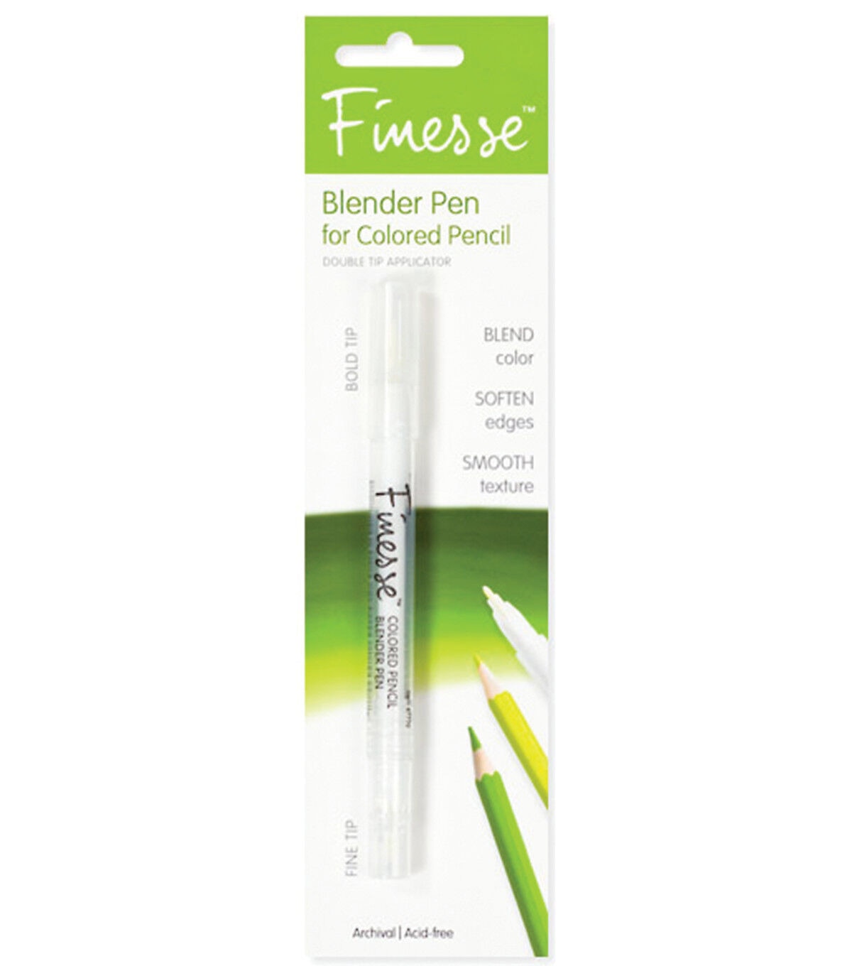 This colorless solvent based blender pen creates amazing watercolor effects with artist colored pencils. Blend, unify and soften pencil strokes as you please. Experiment with the effects of the two different tips - a bullet point on one end and a brush tip on the other.