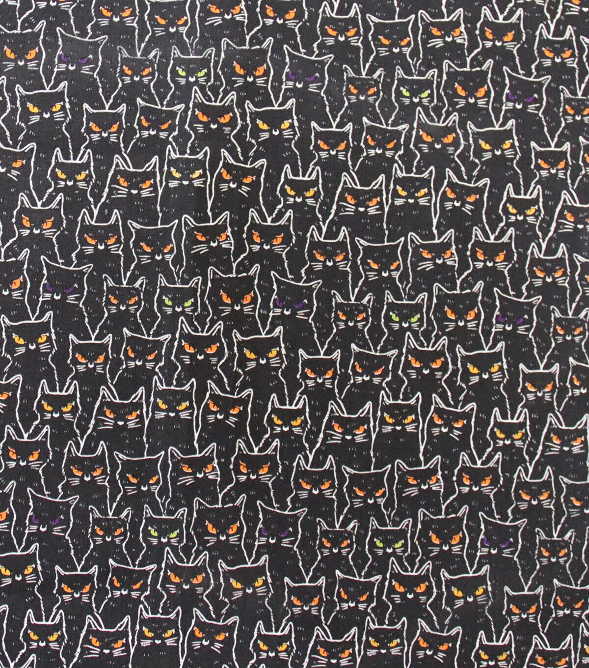 Our Glow in the Dark Cat Eyes Halloween Cotton Fabric is made from 100% cotton, making it soft and comfortable to wear. It is also easy to care for, simply machine wash gentle cold, nonchlorine bleach, tumble dry low, and cool iron. This fabric is imported and has a width of 44 inches.