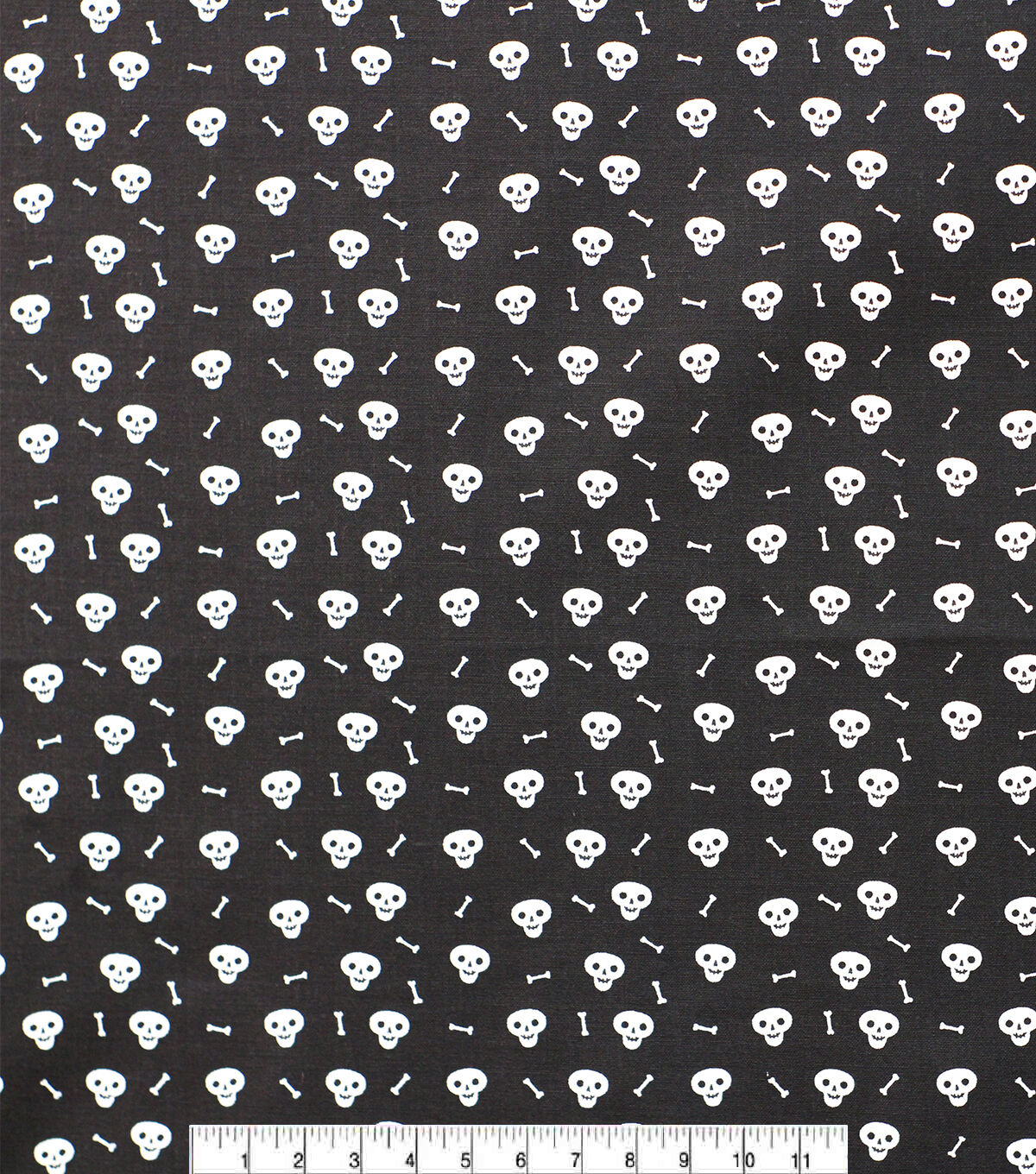 Get ready for Halloween with this eerie and fun fabric featuring glow in the dark skulls on a black cotton background. Perfect for creating spooky costumes, decorations, and crafts that will light up the night. The 100% cotton material is easy to care for and will last for years to come.