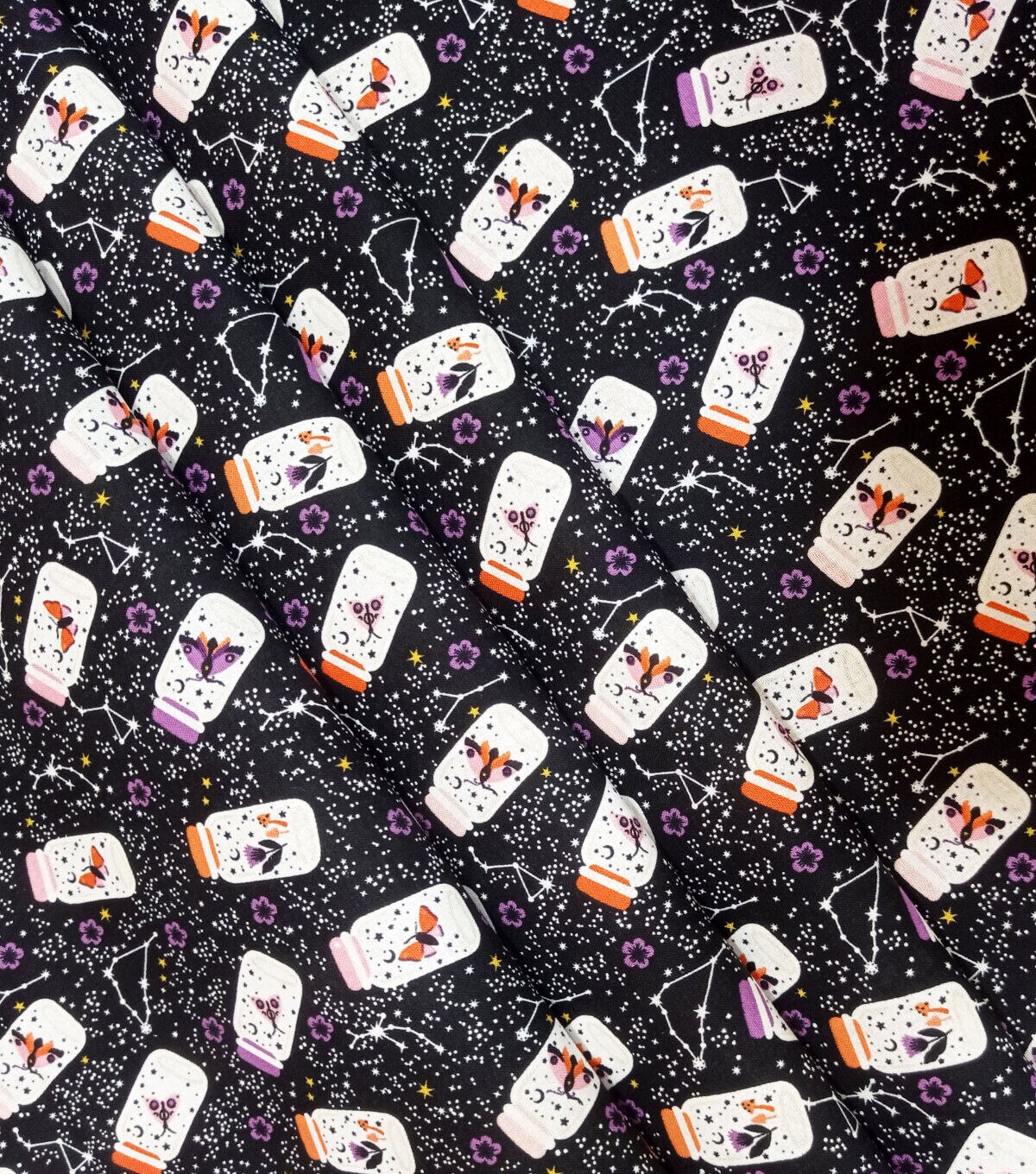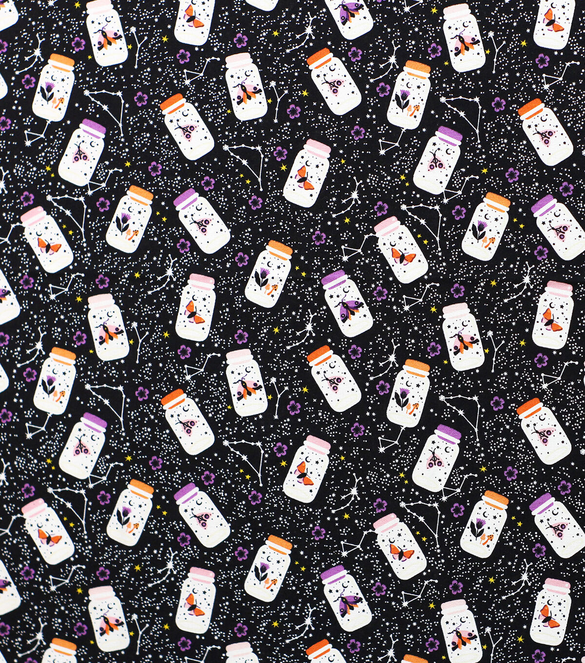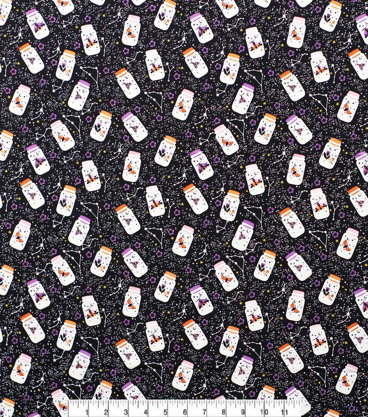 Bring the Night to Life with Glow in the Dark Moths in Jars on Black Cotton Fabric