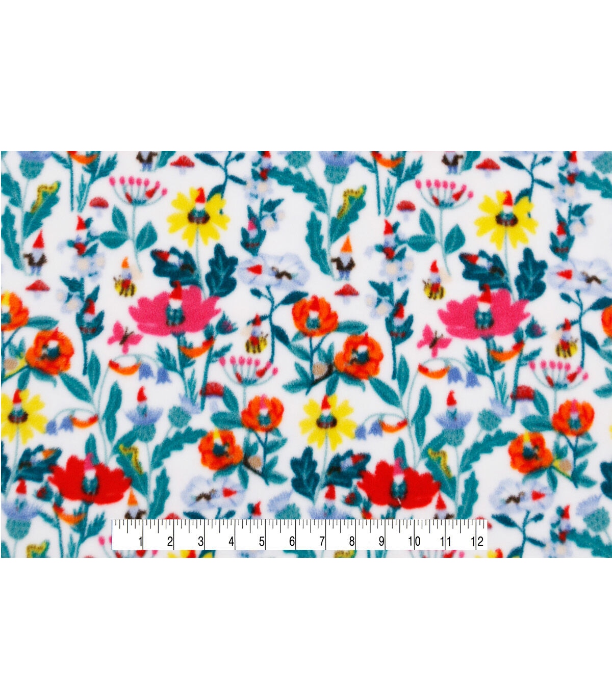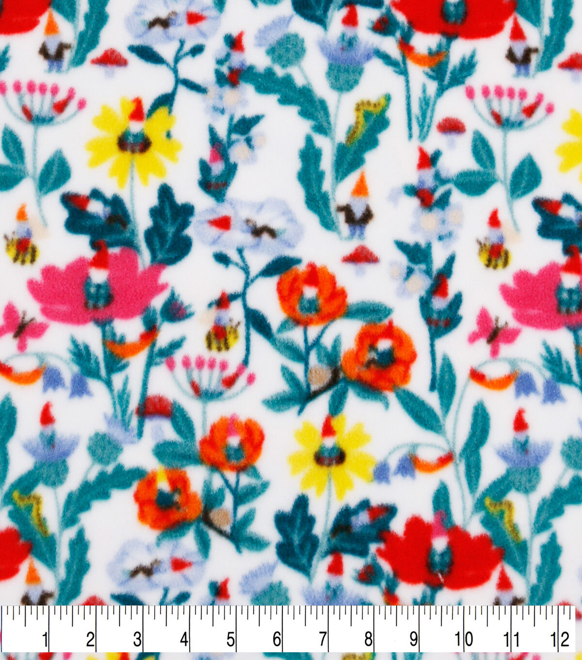 Gnomes & Floral Anti Pill Fleece Fabric