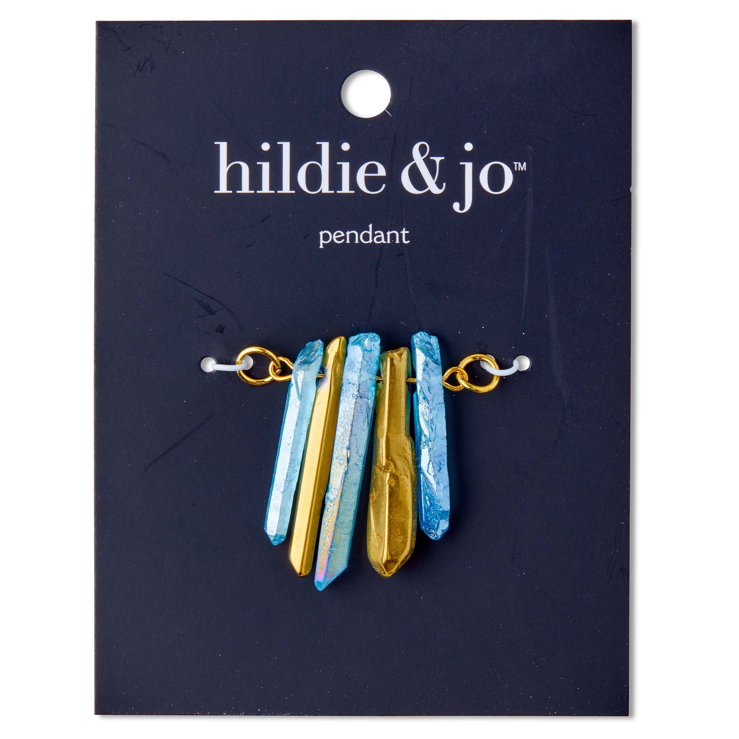 Add a colorful touch to your casual ensemble with the hildie & jo Stones Pendant-Gold & Blue. Showcasing shimmery gold and iridescent blue stones, this pendant will make a great addition to any jewelry-enthusiast's kit. It will also make a beautiful gift for a craft enthusiast in your life.
