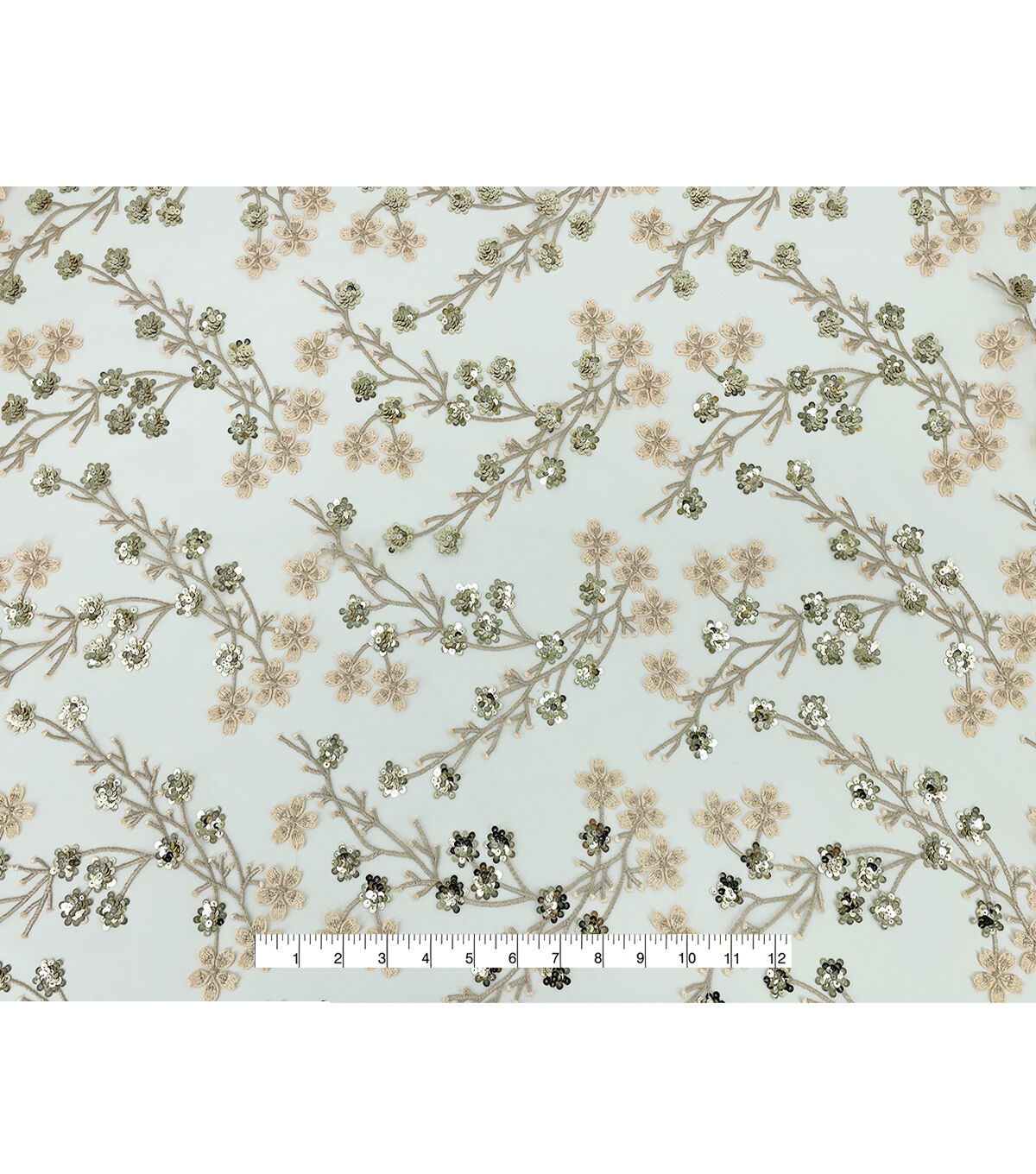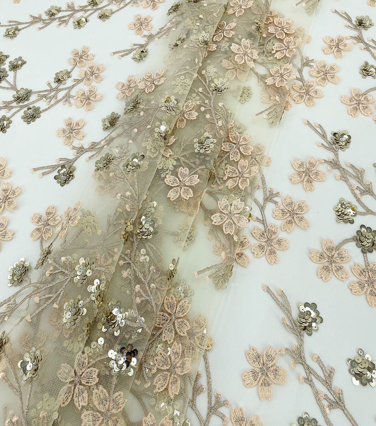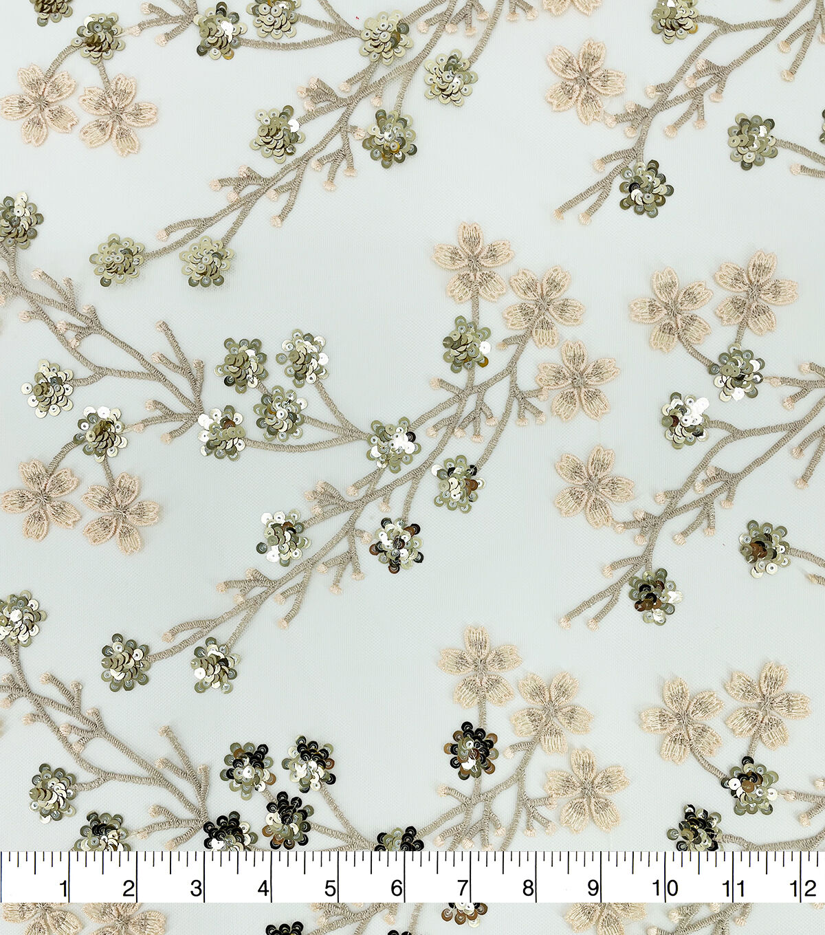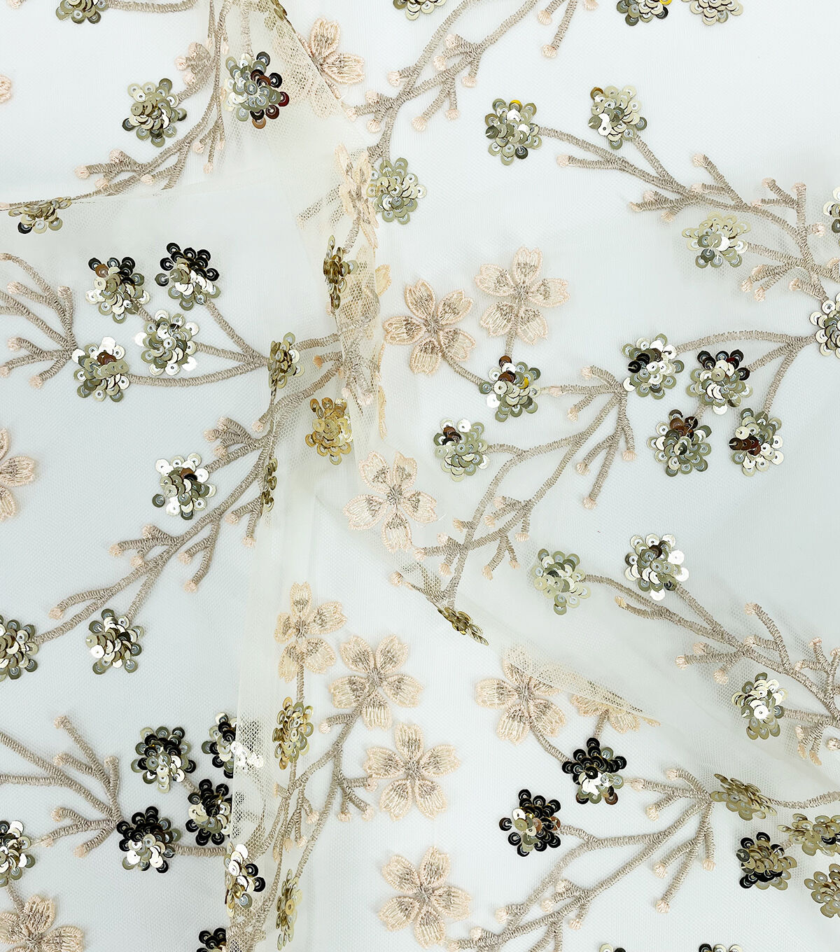 Gold Ditsy Floral Sequin Tulle Mesh Fabric