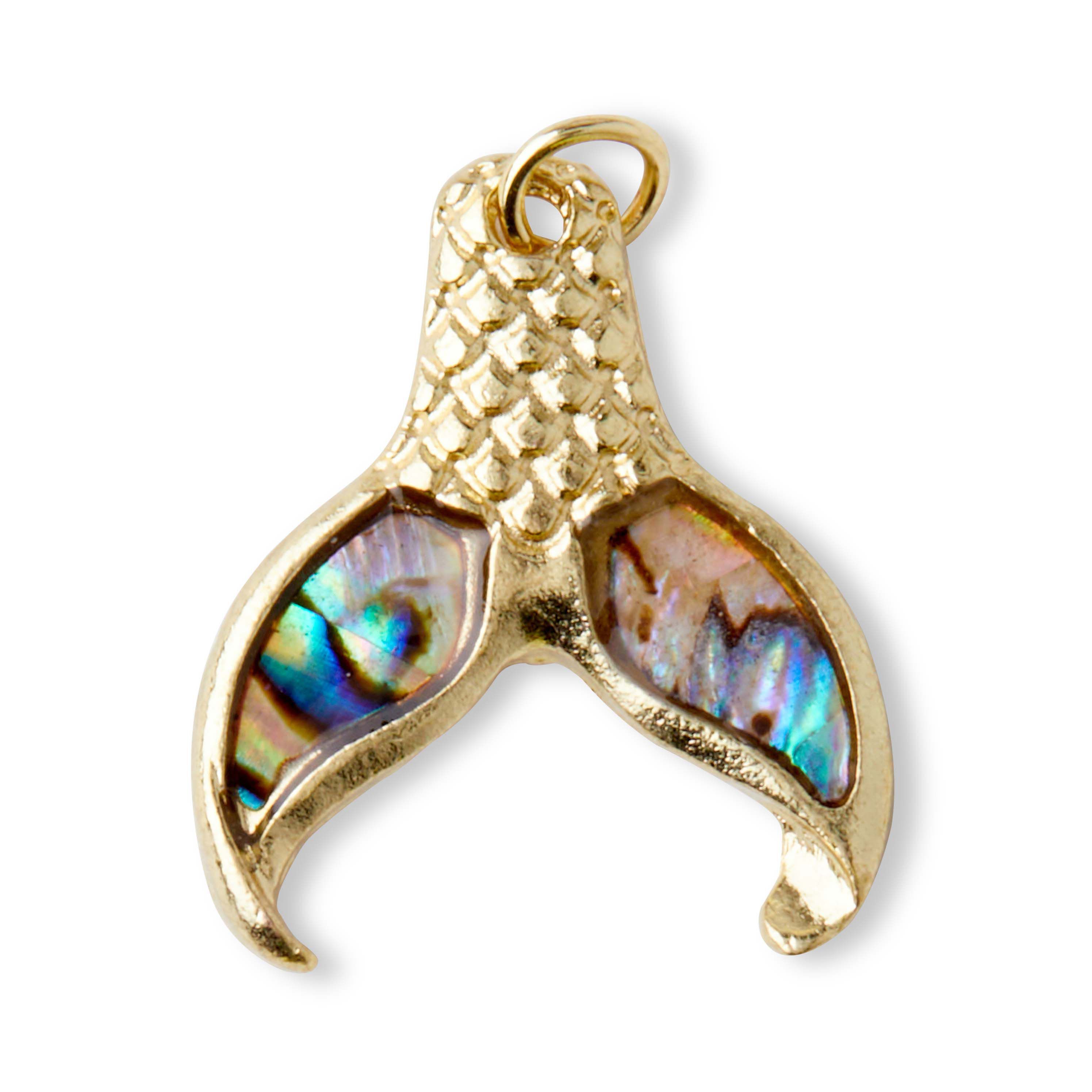 Adorn your necklace with this lovely hildie & jo Symbolize Fish Tail Pendant-Gold. This pendant is in the shape of a fish tail. The top of the fish tail is textured gold and the bottom is multicolored. Add it to a chain or bracelet for an eye-catching effect. It has a jump ring for easy attachment.