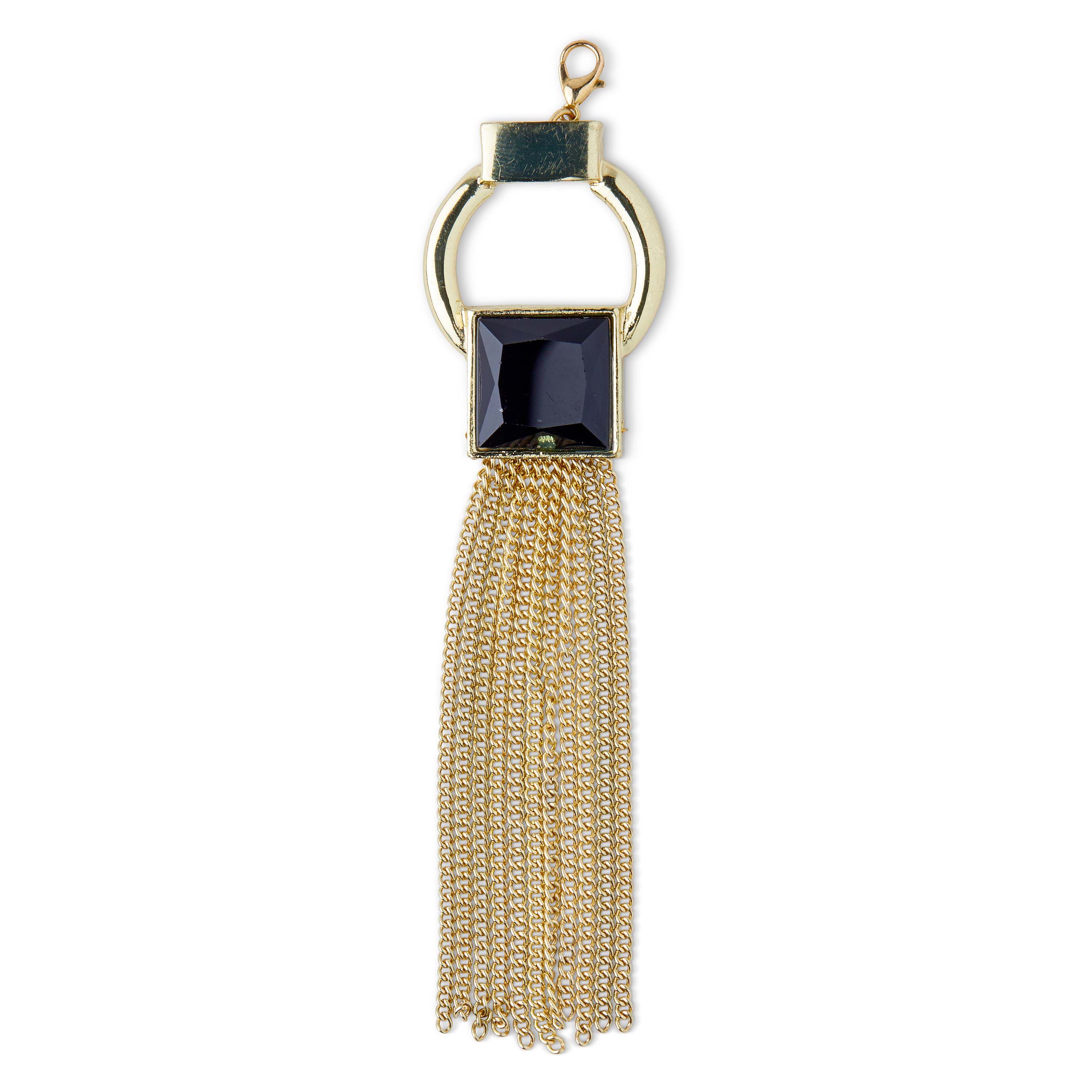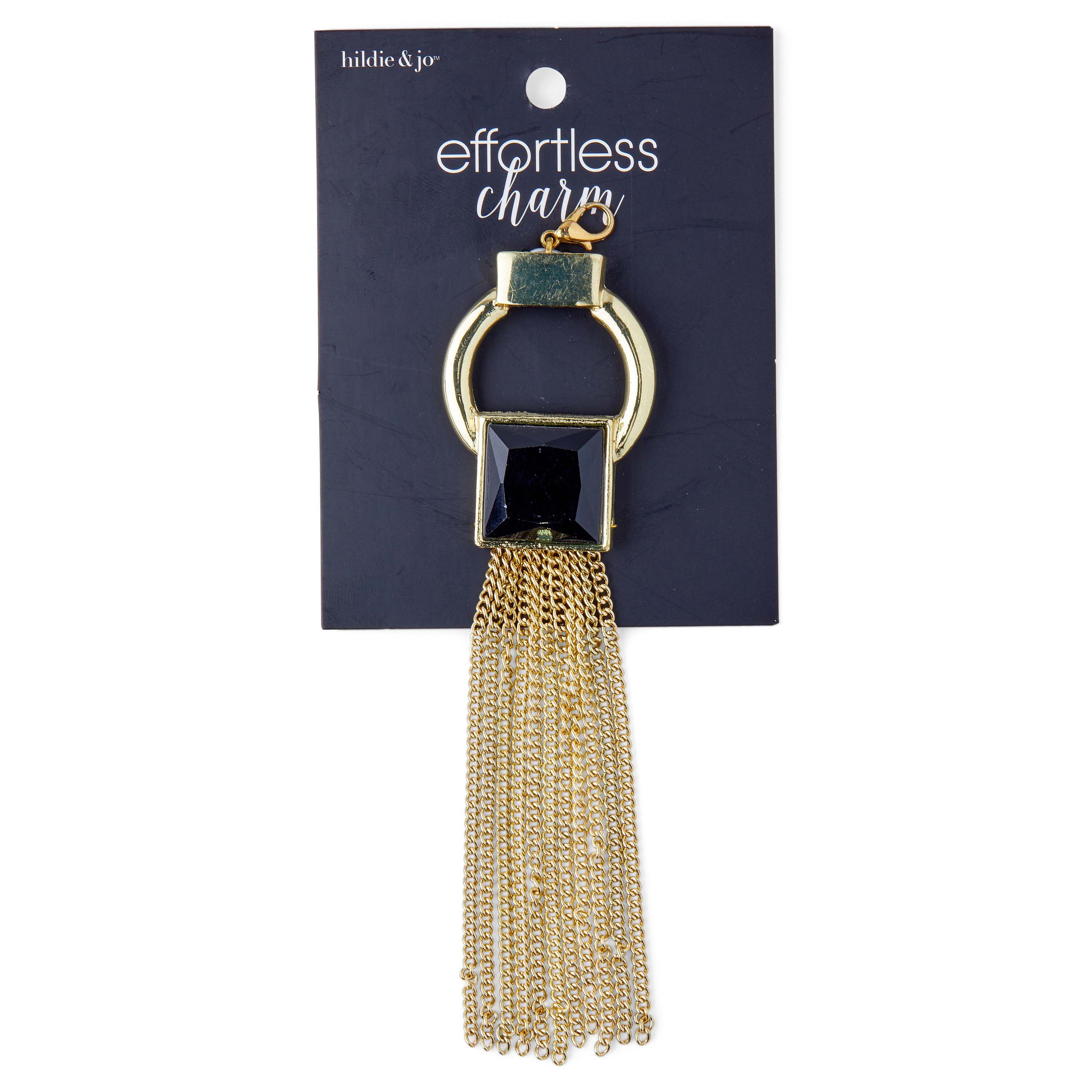 Decorate your necklaces, bracelets and more with the hildie & jo Effortless Charm Gold Metal Ring Tassel-Black Square. Featuring a gold ring and black square, the tassel leaves a lasting impression to your everyday outfits. Combine it with coordinating accessories and jewelry for a completely stunning look.