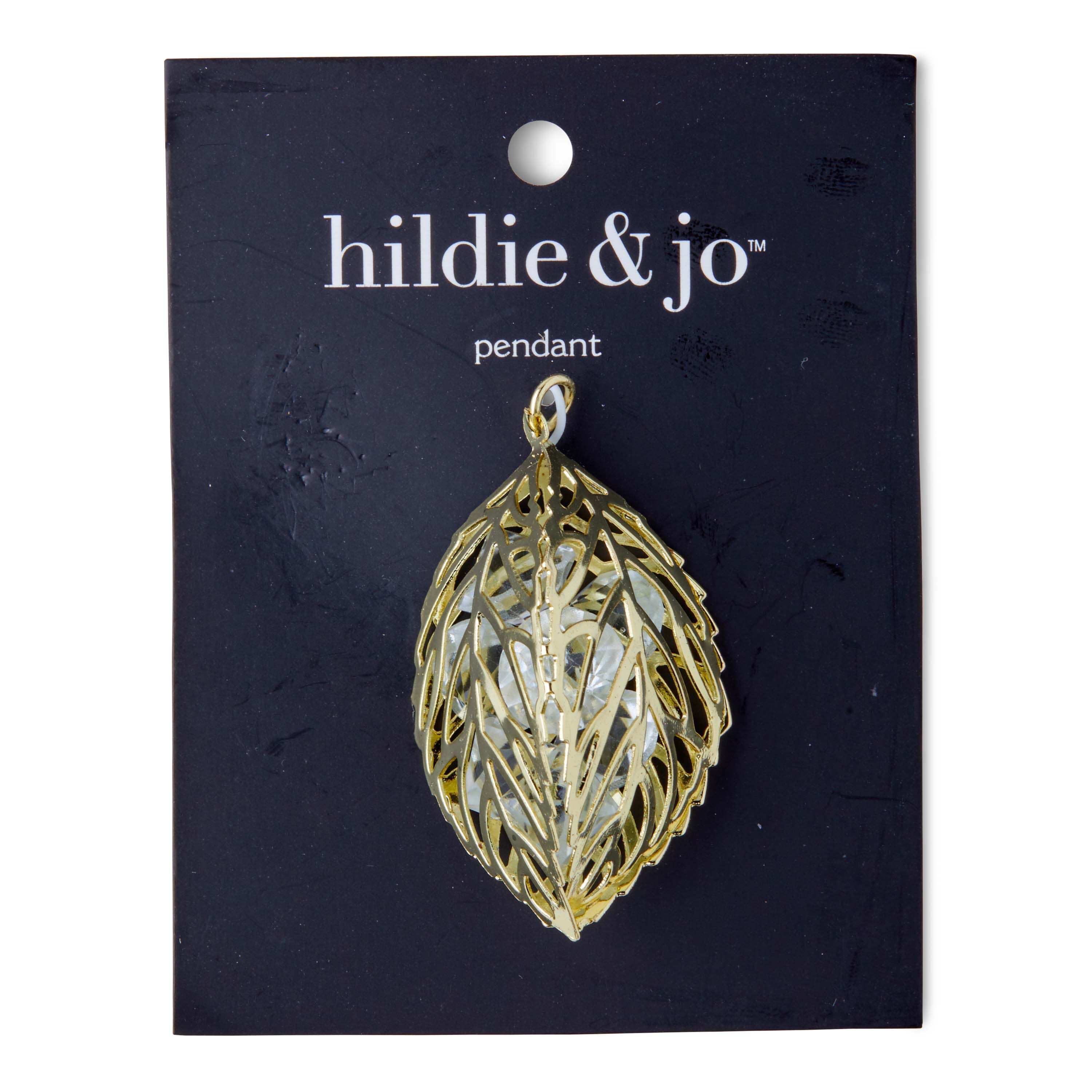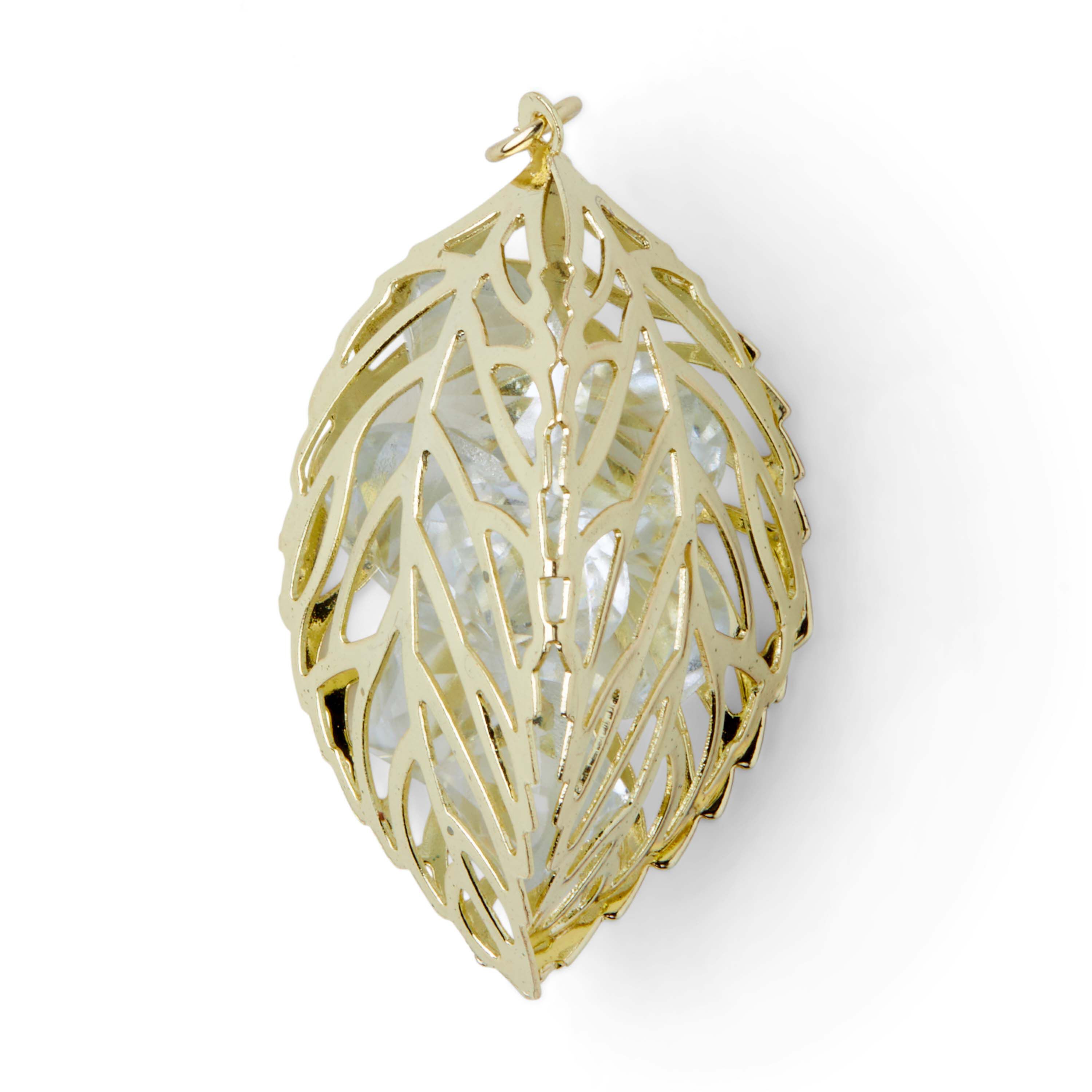 Show your love for nature by creating dainty jewelry pieces with the hildie & jo Leaf Gold Pendant. Designed in smooth gold, the pendant features three open leaves that are fused together to make one pendant. Inside the leaves are clear, diamond shaped crystals for added visual beauty. String it on long, sleek, gold-toned chain to complete your look.