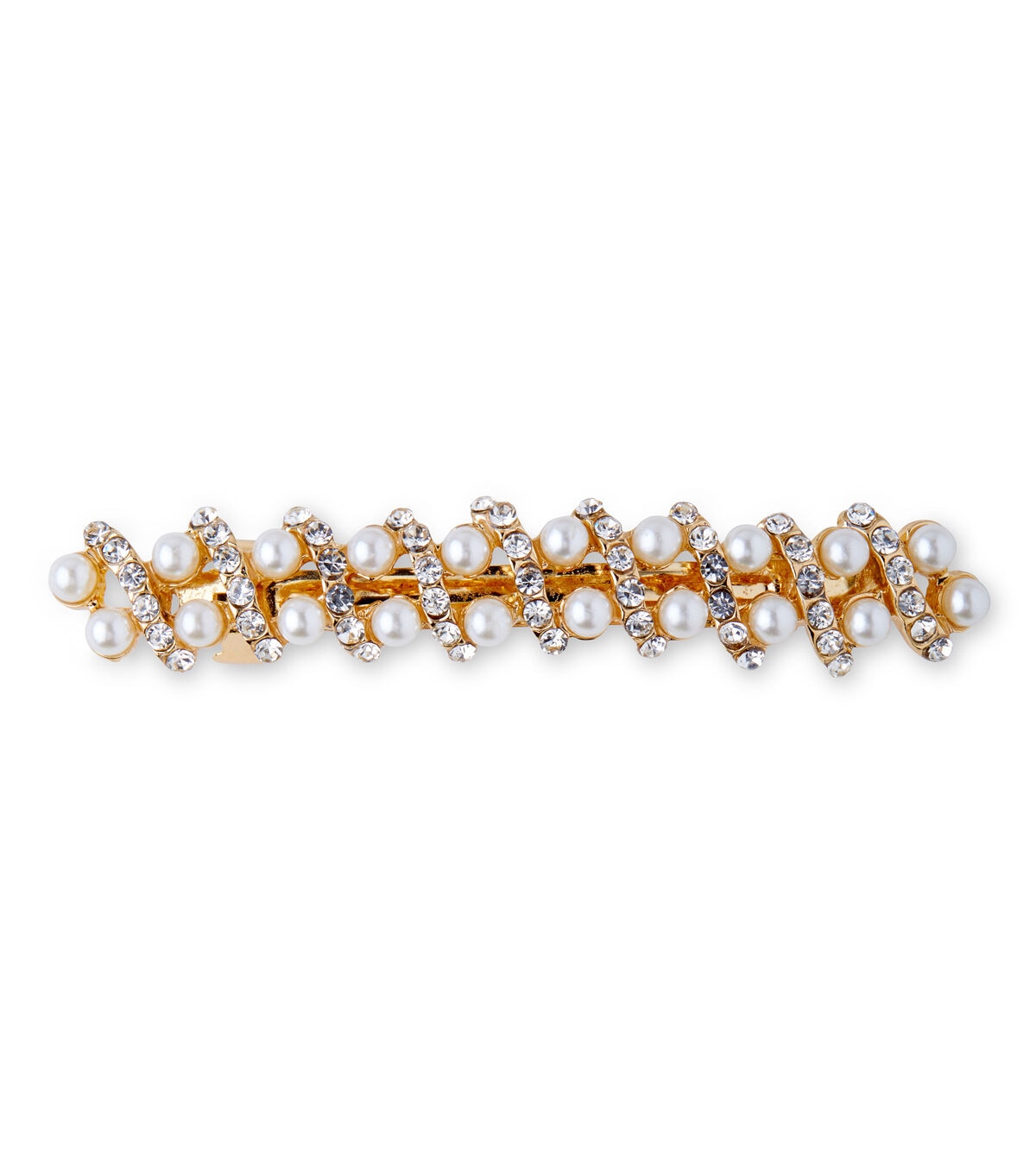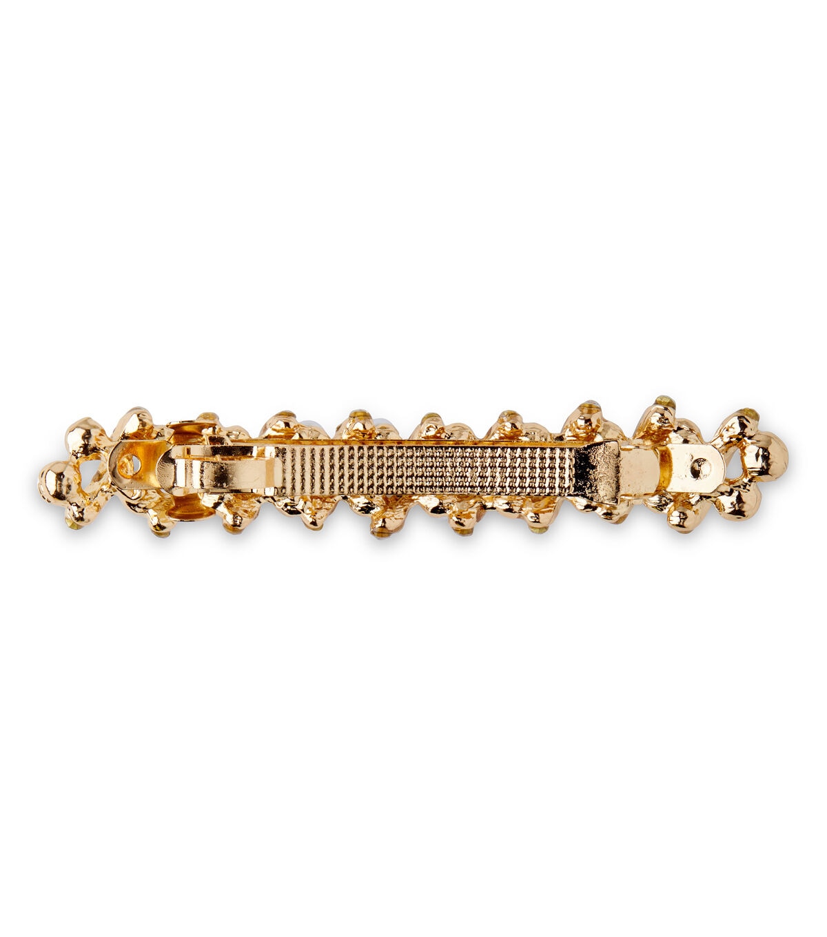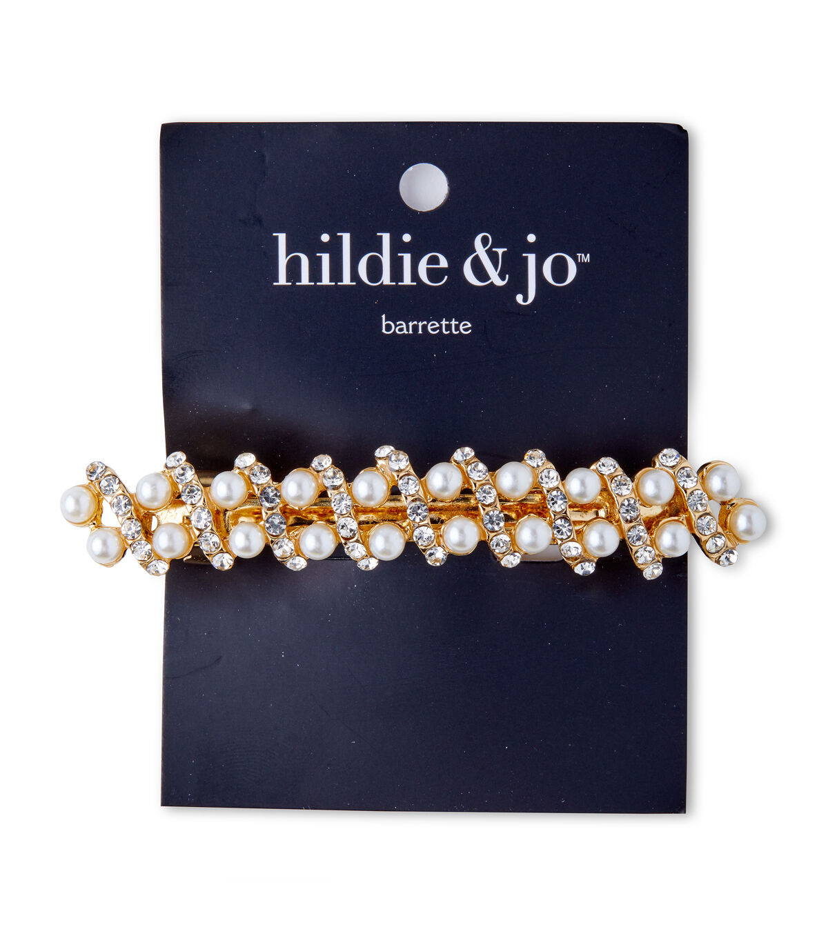 Turn any simple hairdo into a gorgeous sight using the hildie & jo Gold Barrette-Pearls & Rhinestones. This pretty gold-hued barrette is embellished with pearls and rhinestones for added charm. Give it away as a party favor or add it to a festive gift basket.