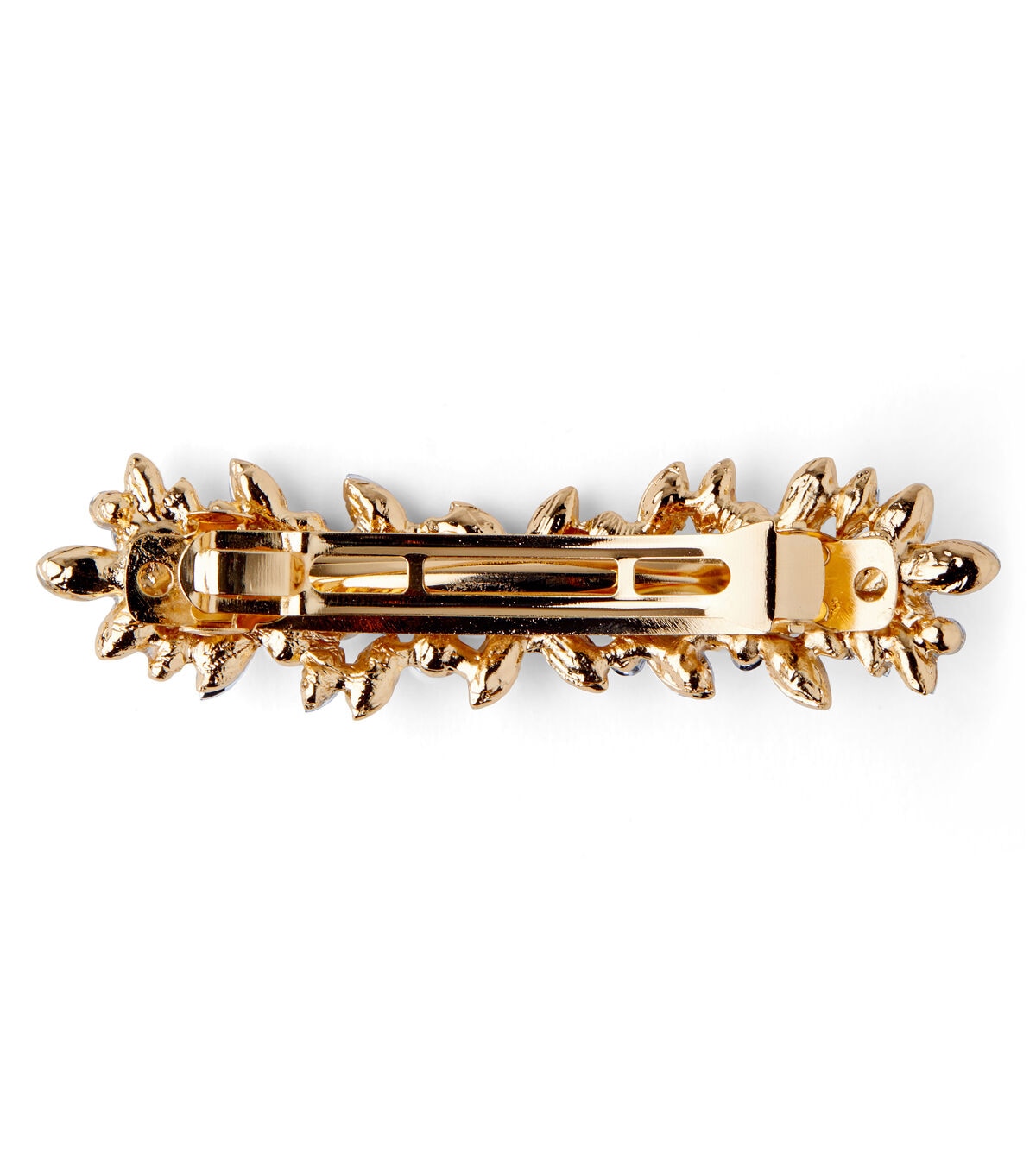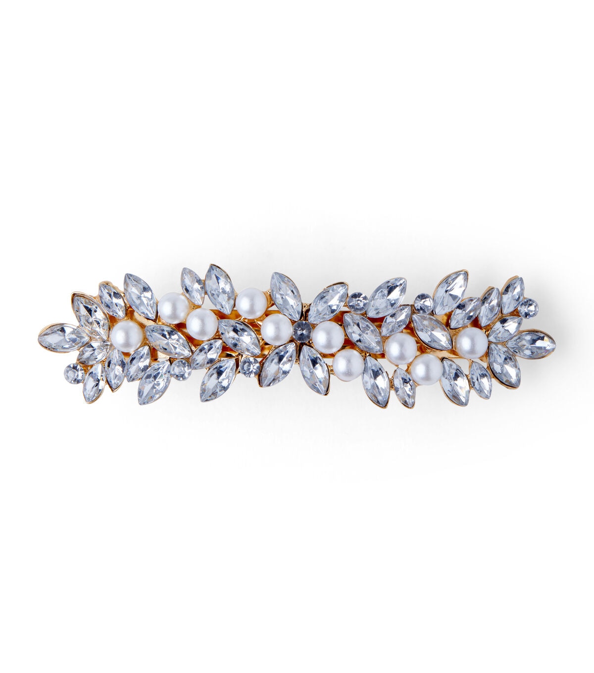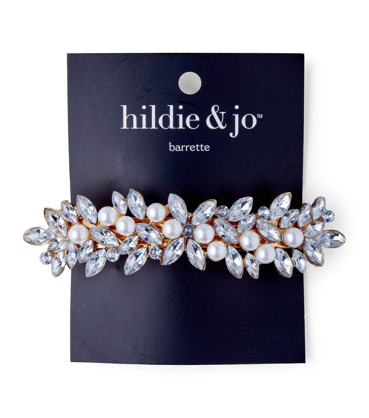 Tie up your hair in a simple ponytail or add just the right amount of sparkle to it using the hildie & jo Gold Barrette-Pearls & Flower Rhinestones. This gorgeous pearl and rhinestone studded barrette will make your hairdo standout at any occasion. You can also gift it to a friend to loves hair accessories.