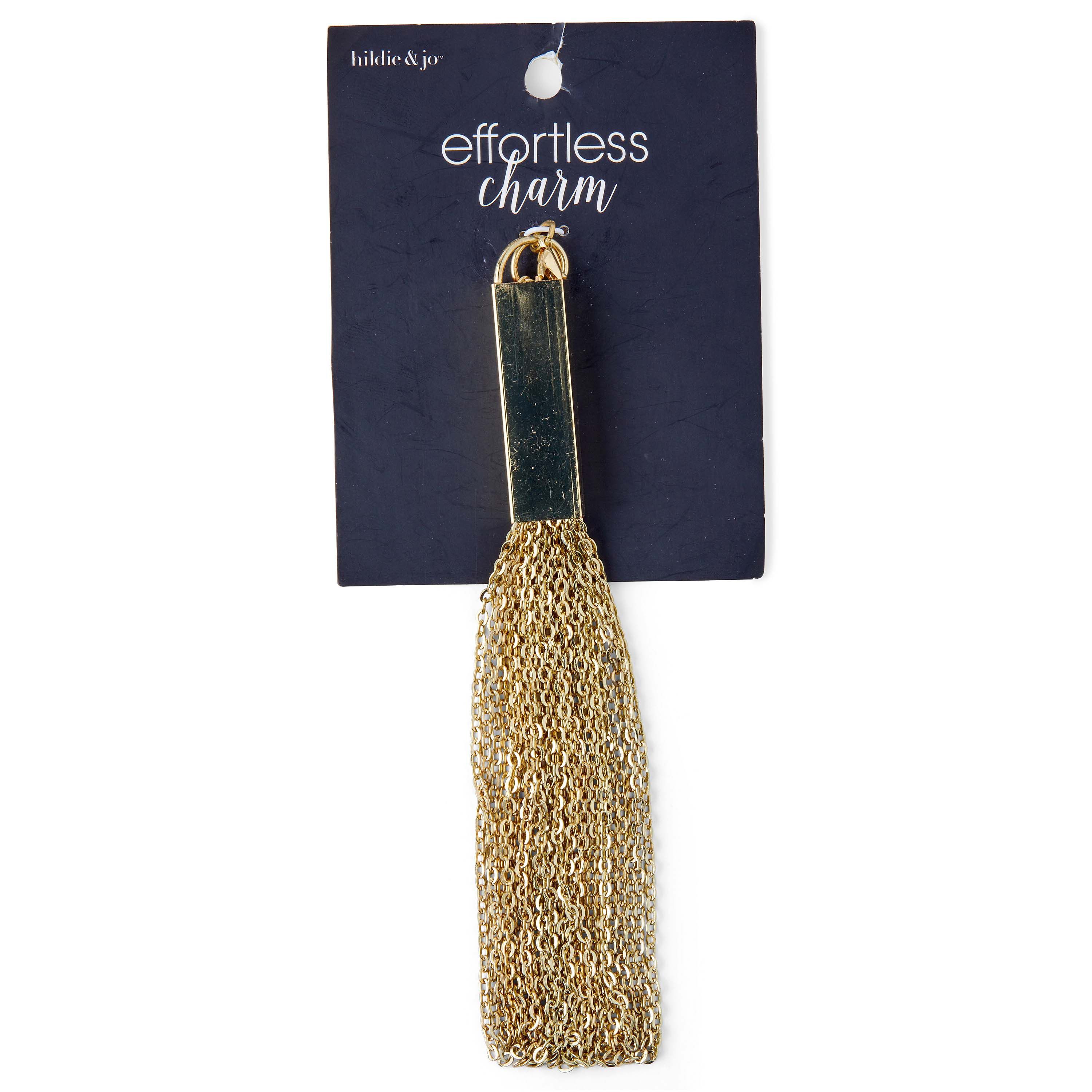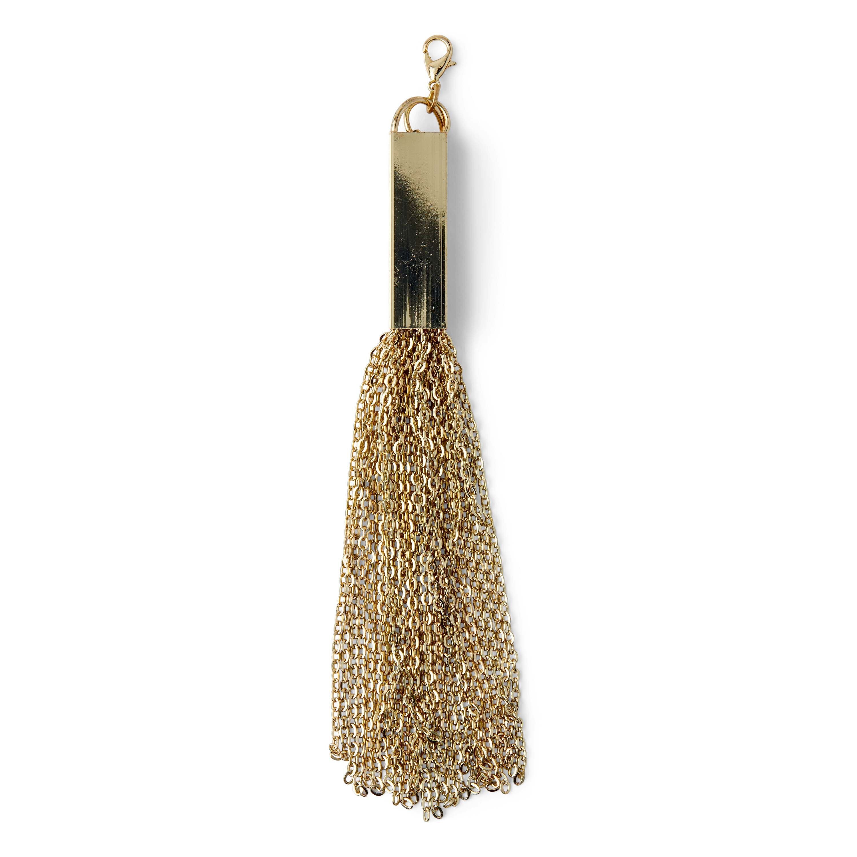 Complement anything from a chic bag to trendy jewelry using the hildie & jo Effortless Charm Rectangle Gold Tassel. Beautiful and simple, the tassel is made of zinc alloy and brass, which perfectly blends with a smooth gold finish for visual flair. Add it to a necklace, keychain, backpack and more to create a personalized look.