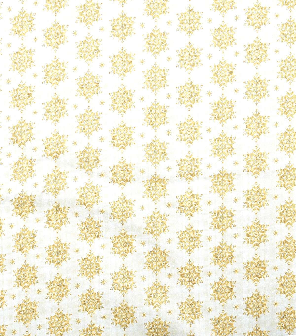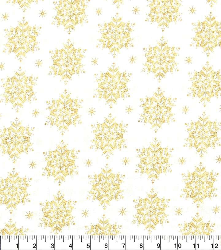 • Gold Snowflakes on White Christmas Cotton Fabric