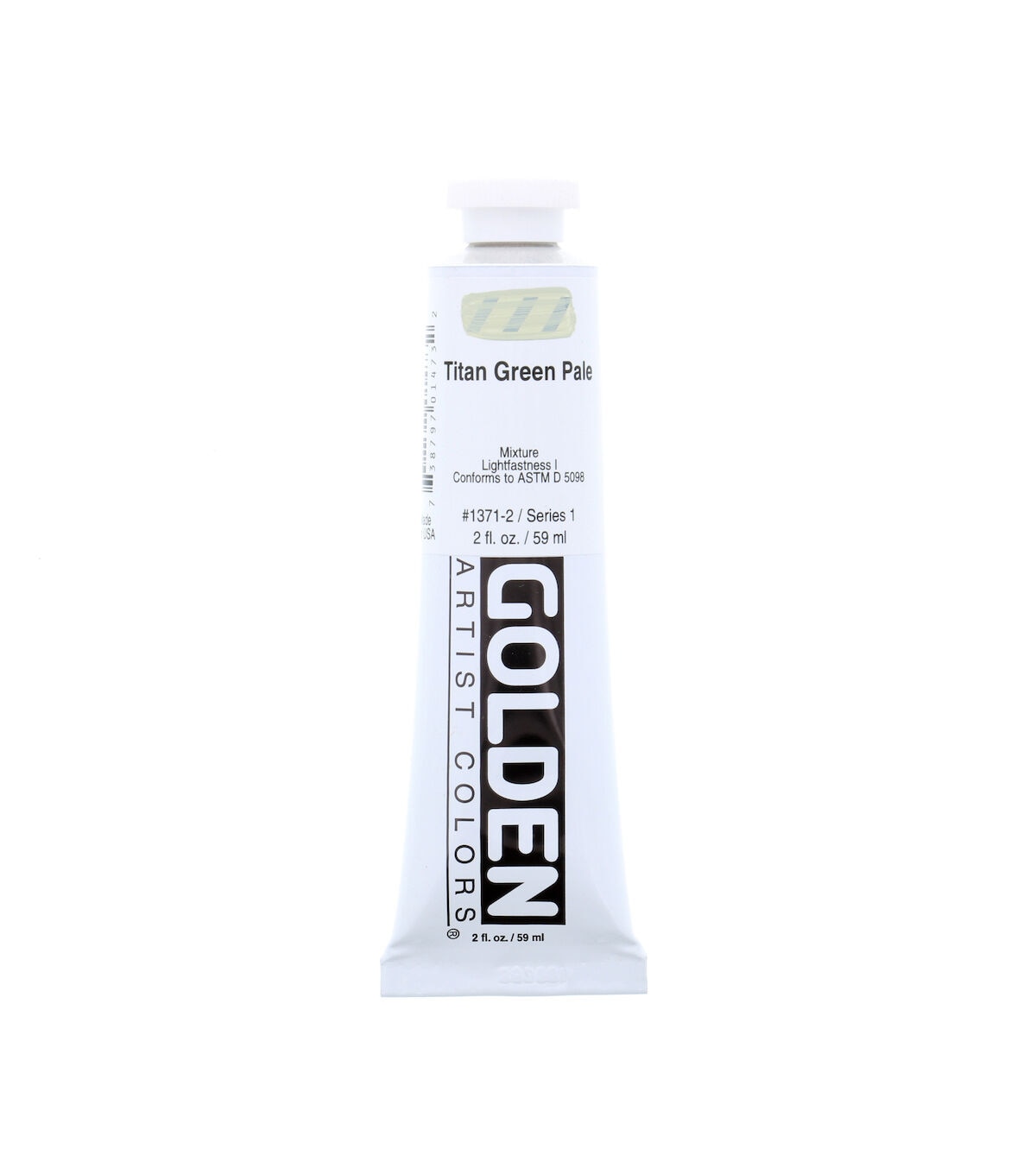 This heavy body Golden Artist Colors Heavy Body Acrylic Paint-Titan Green Pale is perfect for painters looking for professional-quality paint with an iridescent effect. Each color achieves its reflective properties by synthetically reproducing natural phenomena including the nacreous qualities in fish scales, the pearlescent dust of a butterfly's wing, and the reflective qualities found in certain metals and minerals. This acrylic paint creates a highly reflective, metallic variation when mixed with Golden colors, allowing you to paint truly stunning, unique works of art.