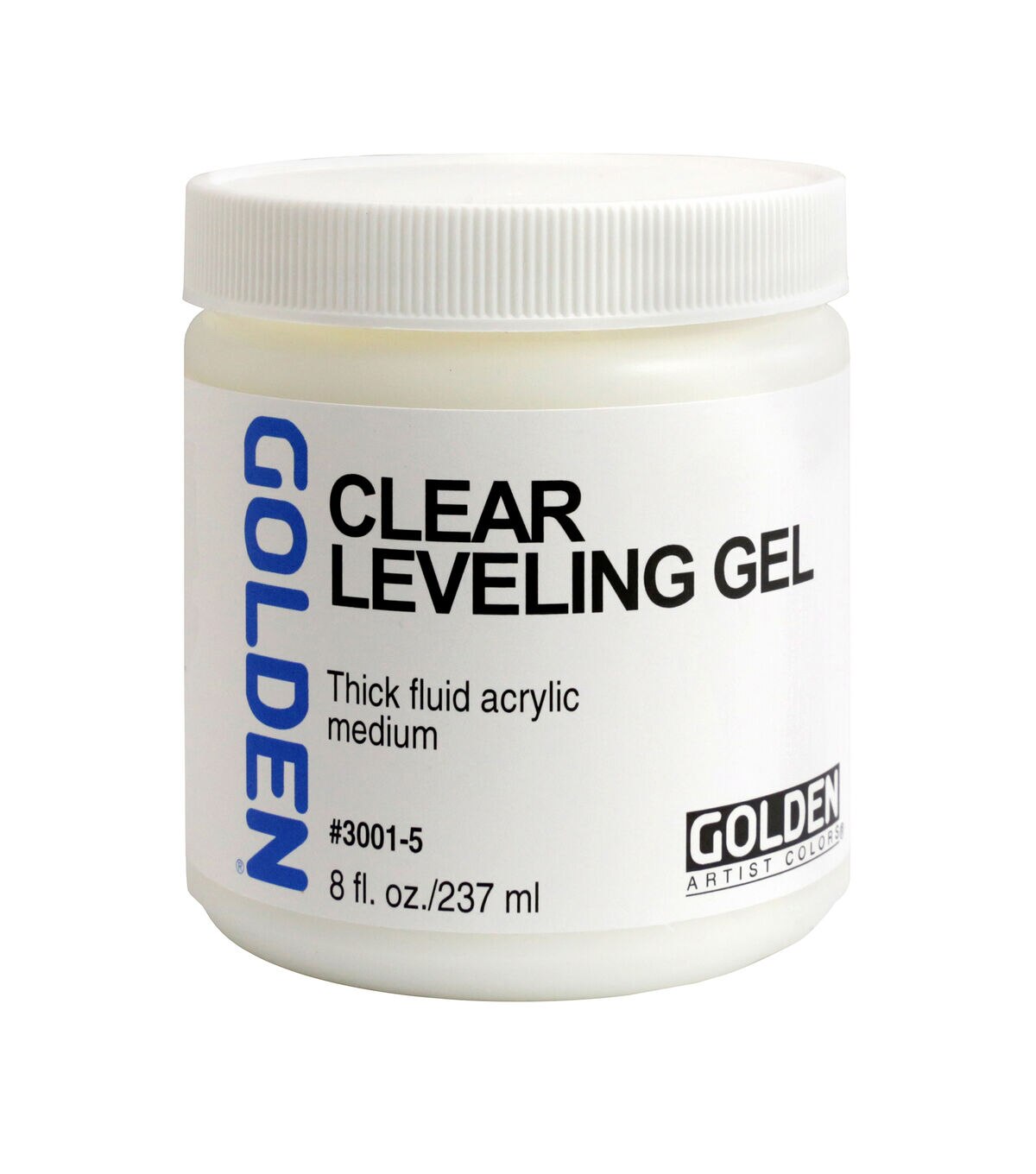 To achieve a variety of effects and expressions in your acrylic projects, reach for the self-leveling Golden Artist Colors Leveling Gel-Clear. When used in conjunction with your favorite acrylic colors, this gel produces an even film with excellent clarity resulting in a flexible, high-gloss film that increases transparency and sheen.