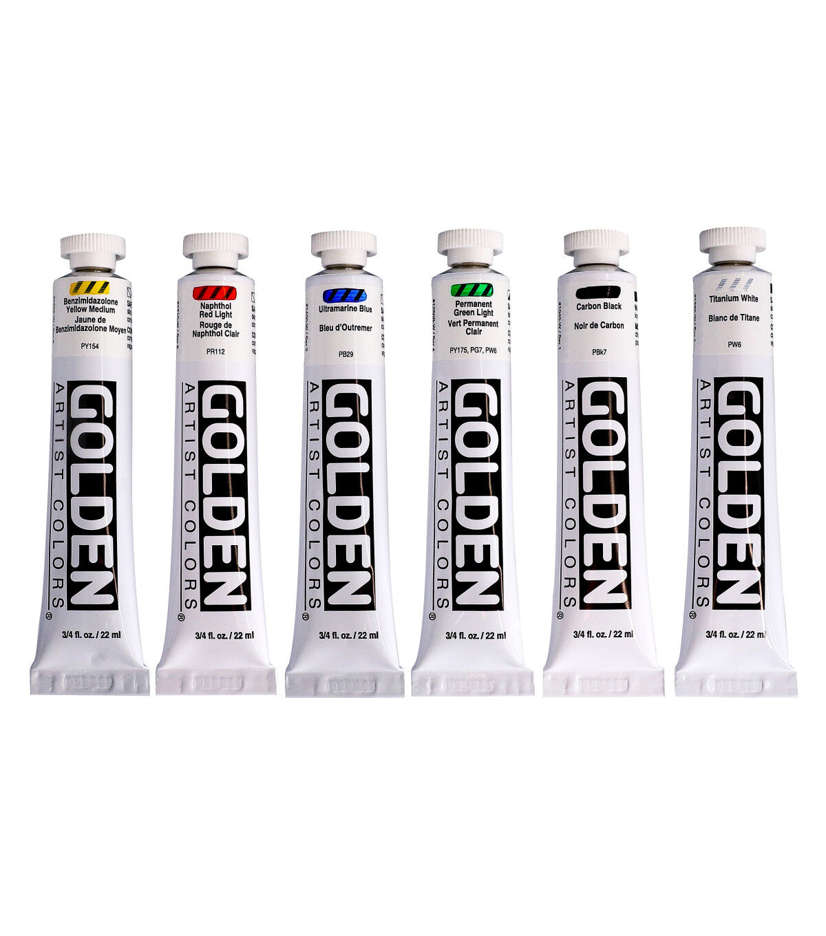 These 100% acrylic, smooth, thick colors from Golden are offered in a large assortment of unique pure pigments. There are no fillers, extenders, opacifiers, toners or dyes added. They render excellent permanency and lightfastness. Each color is formulated differently depending on the nature of the pigment. Colors that tolerate higher pigment loads dry to a more opaque, matte finish. Colors that are more reactive and do not accept high pigment loading dry to a glossy finish and tend to be more transparent.