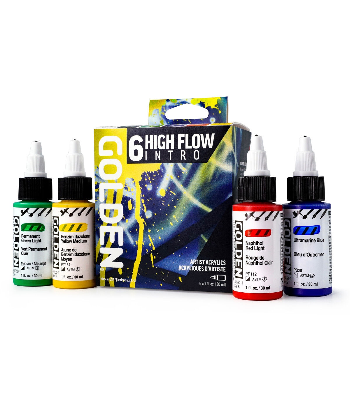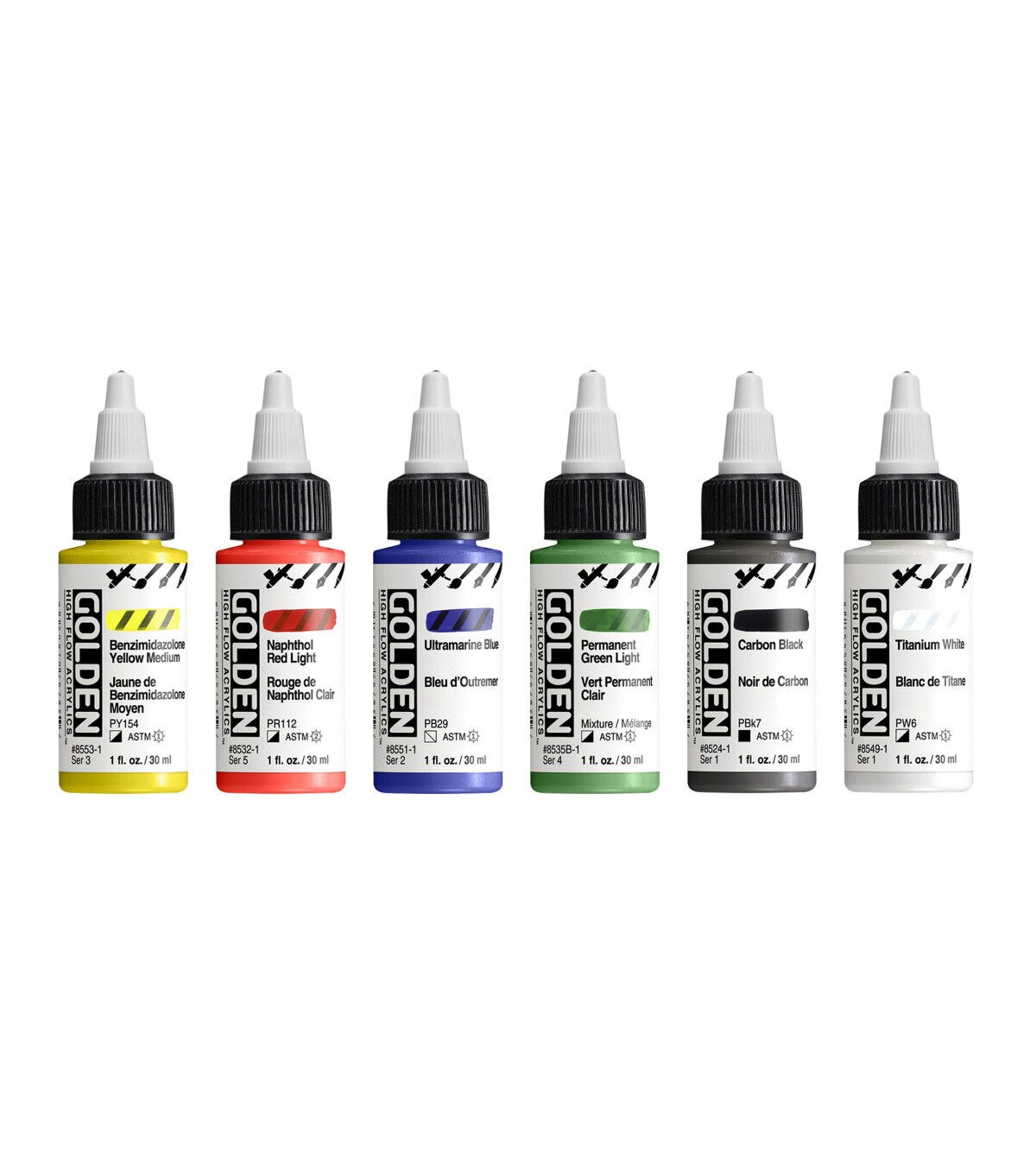These acrylic paints have an ink-like consistency that lends itself to a wide range of techniques. From fine line detail work to broad strokes, these acrylics are suitable for many different applications including calligraphy, mixed media, airbrush, refillable markers, technical pens and brushes. Designed for artists who want to achieve fine line detail, standing effects and level colors.