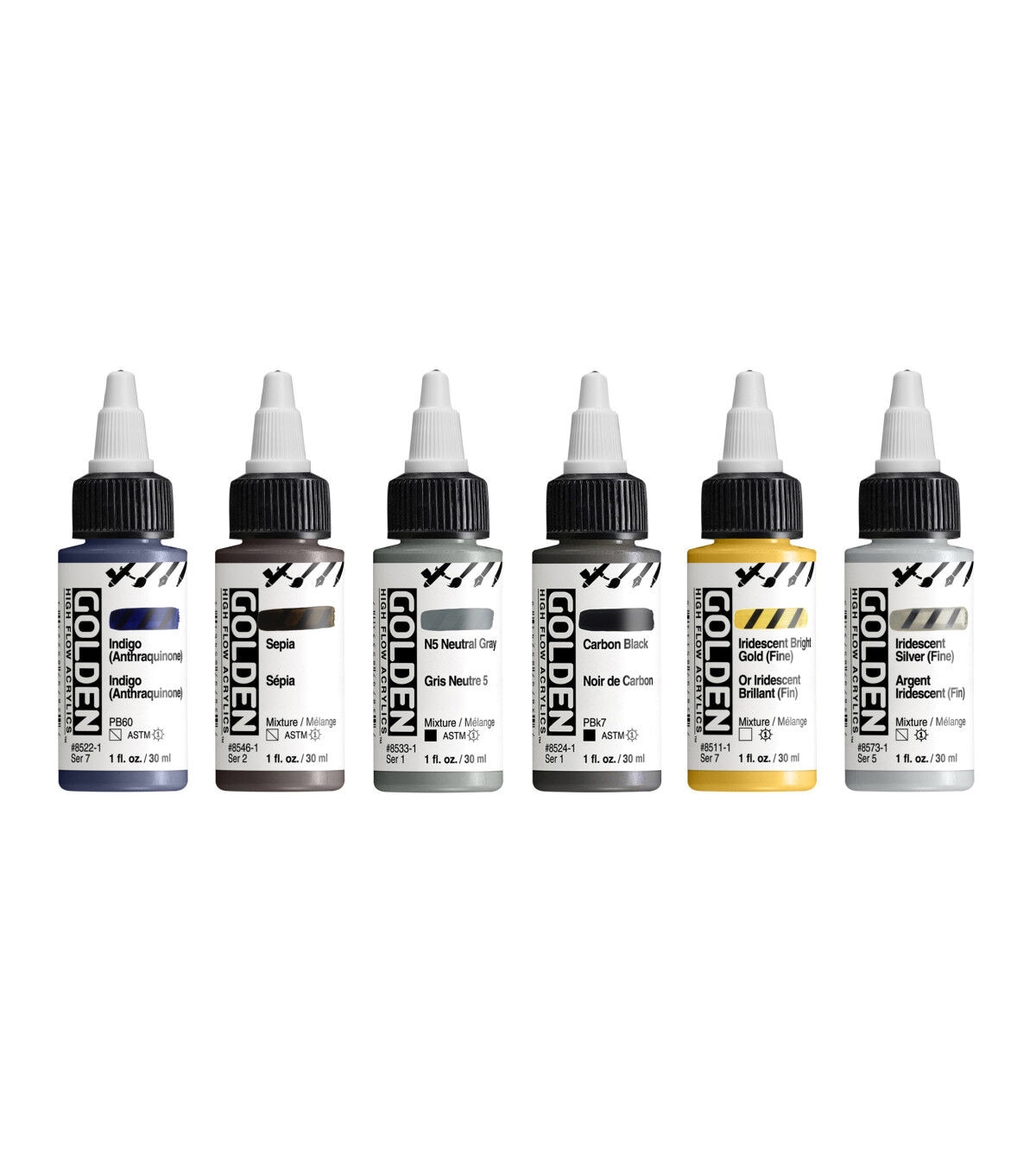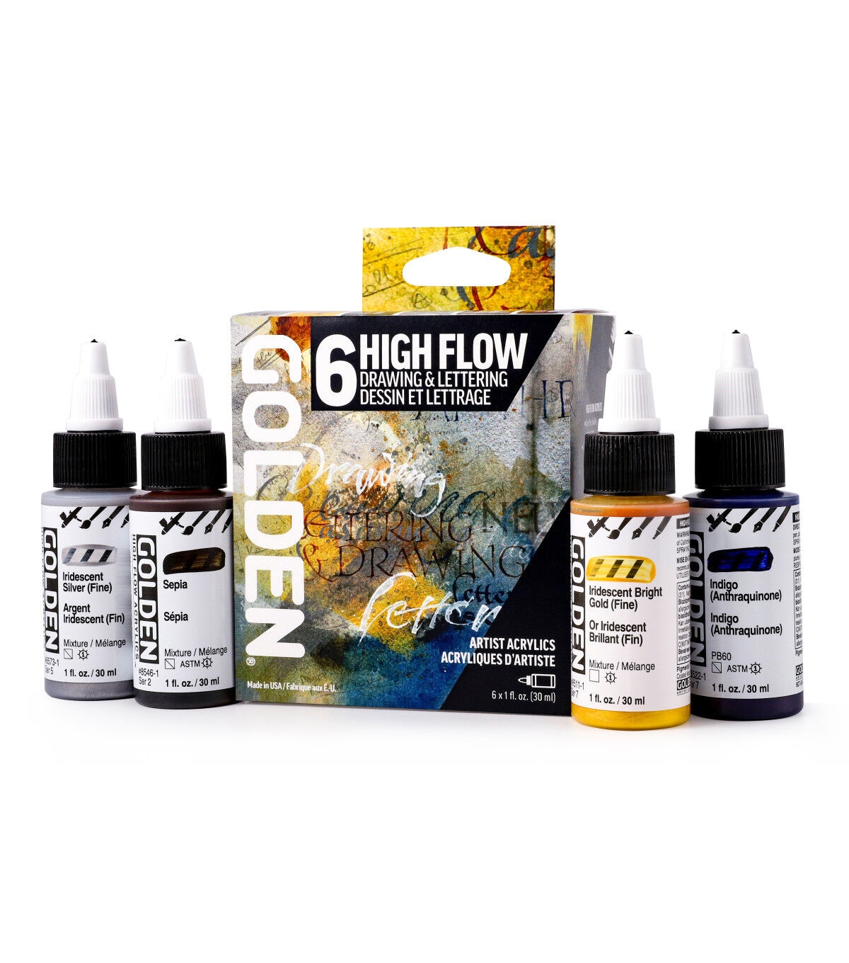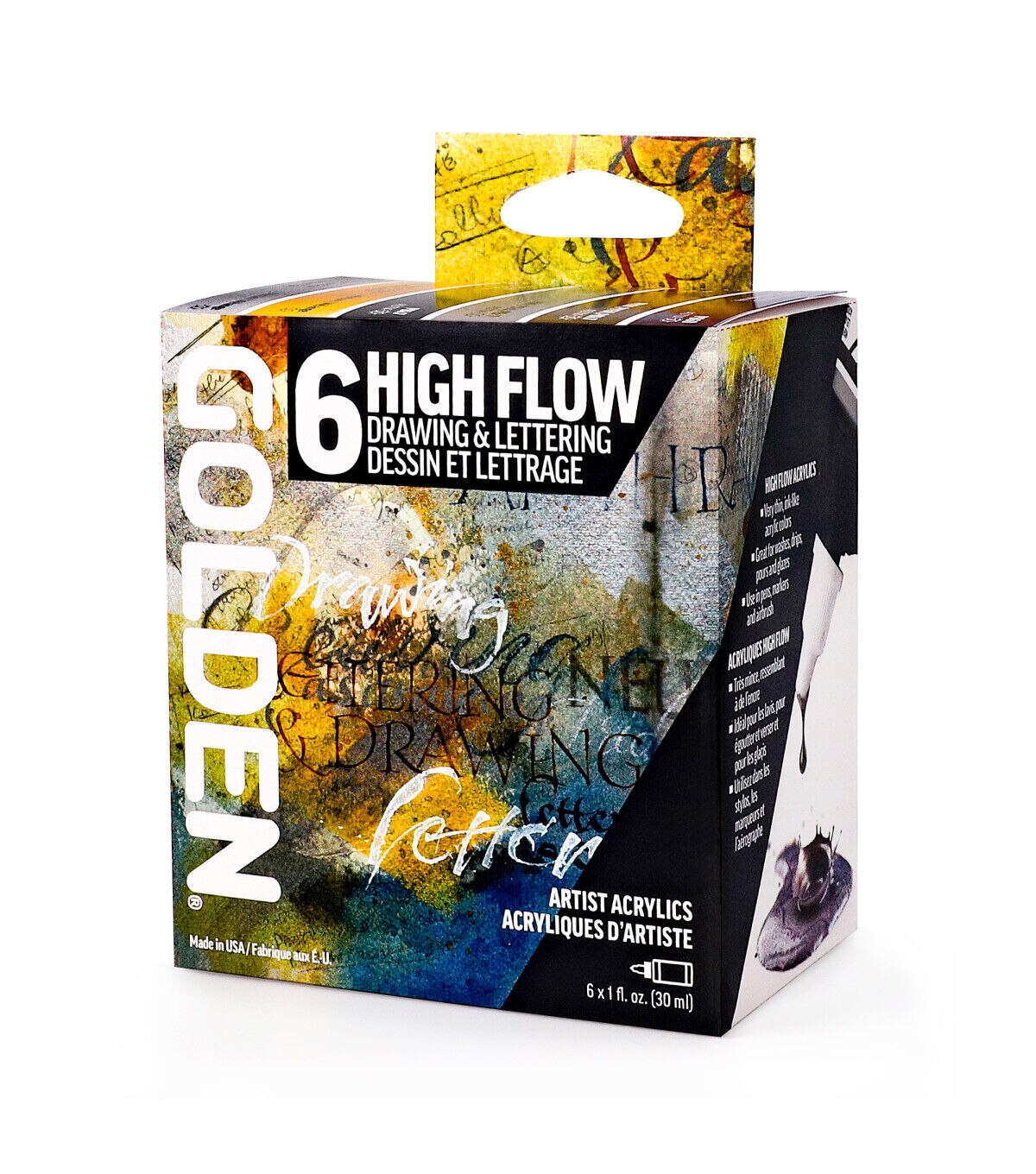 These acrylic paints have an ink-like consistency that lends itself to a wide range of techniques. From fine line detail work to broad strokes, these acrylics are suitable for many different applications including calligraphy, mixed media, airbrush, refillable markers, technical pens and brushes. Designed for artists who want to achieve fine line detail, standing effects and level colors.