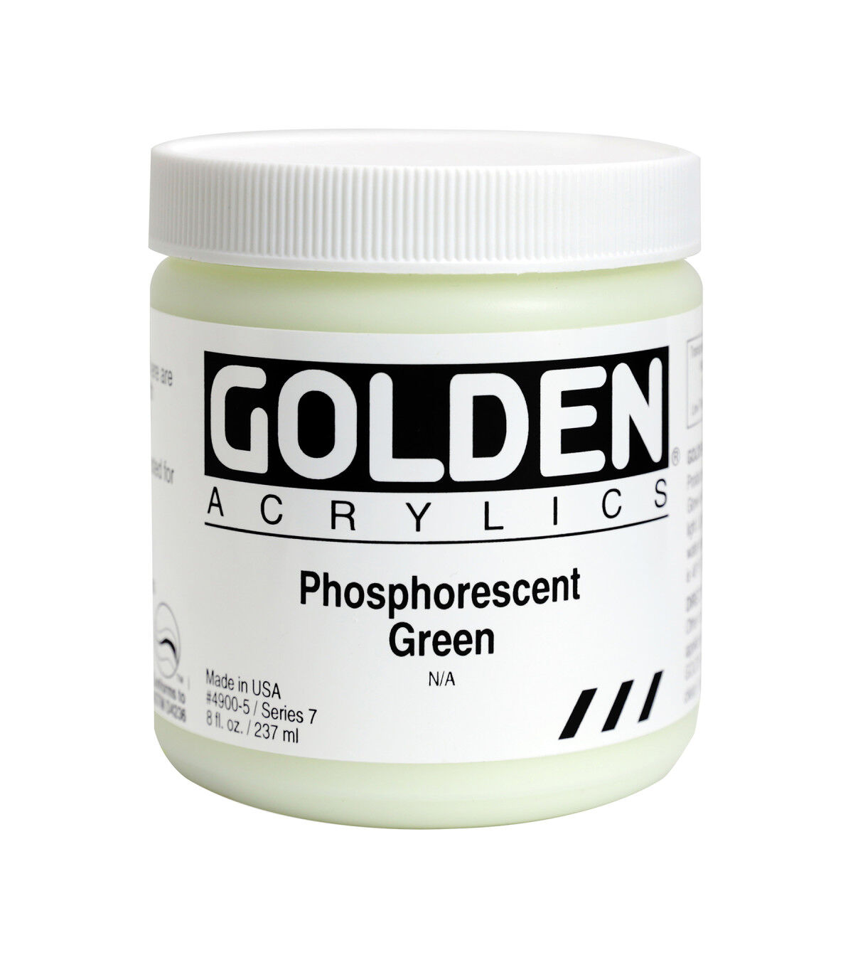 This water-based acrylic medium can be applied to various surfaces. The unique pigment absorbs and stores both natural and artificial light, resulting in glow in the dark effects. Turn off the lights or place your artwork in dark space to discover a bright, greenish glow. Create interesting effects with fine art or explore fun projects (like starry ceilings). The glow steadily diminishes as the stored light energy is released and needs to be "re-charged" with light.