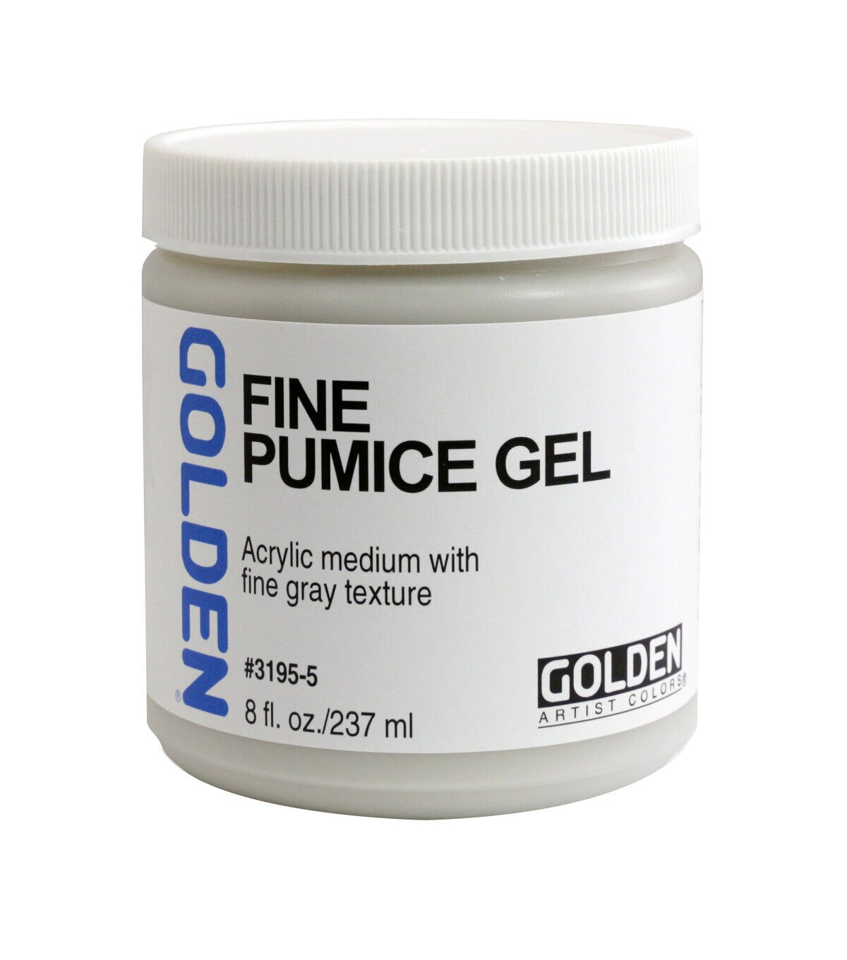 This coarse pumice gel yields a concrete-like finish with acrylic paints. Create finely textured surfaces and blend with Golden Acrylic colors to increase flexibility.
