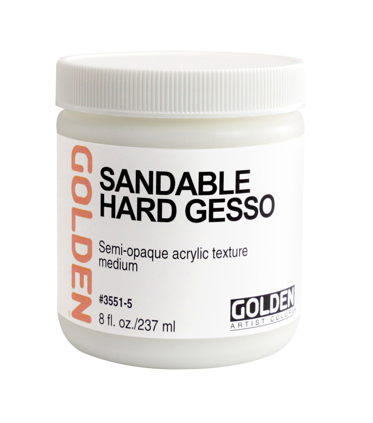 Gesso can be thought of as the bridge between whatever you paint on and the paint. This Sand able gesso is formulated with 100% acrylic polymer emulsion and can be sanded to provide surfaces that are smoother and more even than those created using regular gesso. Available in multiple sizes, Only use on inflexible surfaces such as hardboard, wood or metal panels