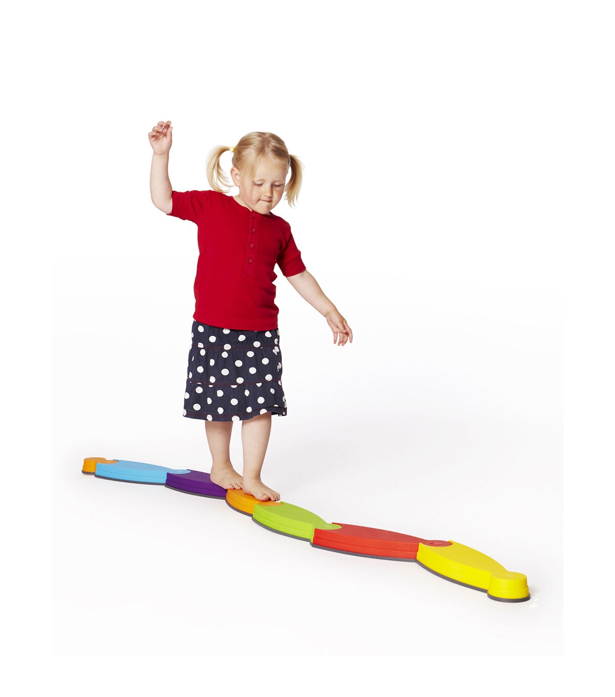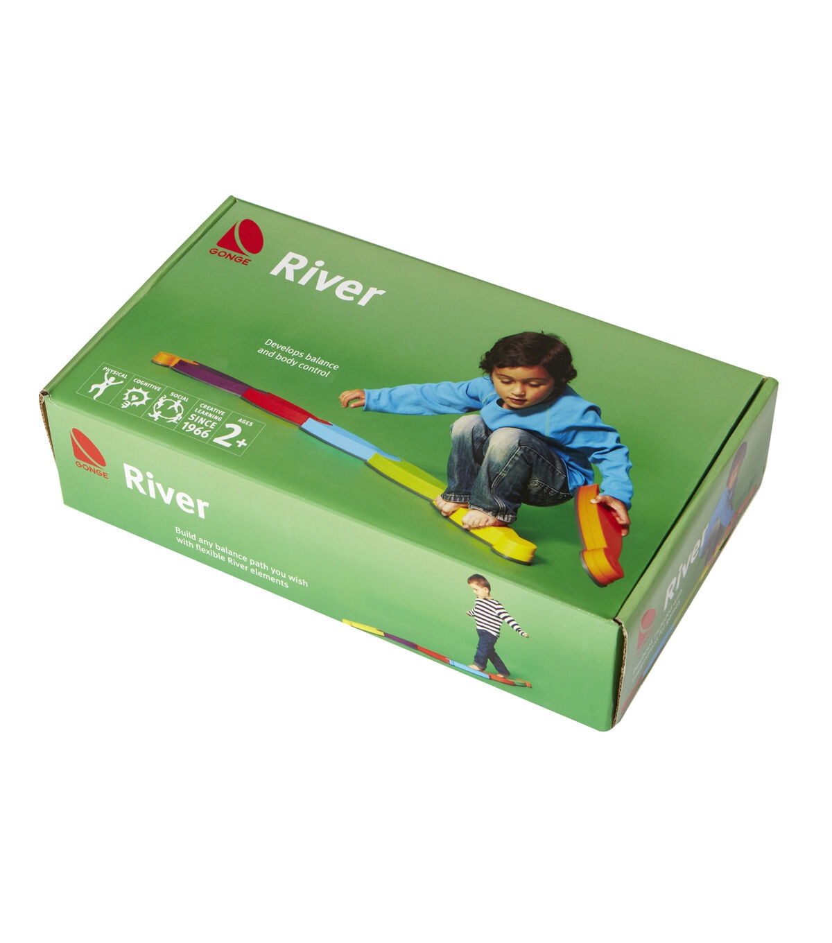 A unique element providing unlimited possibilities for building balance paths! The elements are easy to join and very flexible, so only the imagination sets limits to the course of the river. Due to the size of the elements, even small children will be able to build a "river". Made from durable plastic with anti-slip rubber edges, the river combines high-quality with attractive design. The elements are stackable for easy storage. Can be combined with the "Island" and the "Bridge" (both sold separately). Includes 6 pieces of river, one connector link, and guide. Weight limit 220lbs.