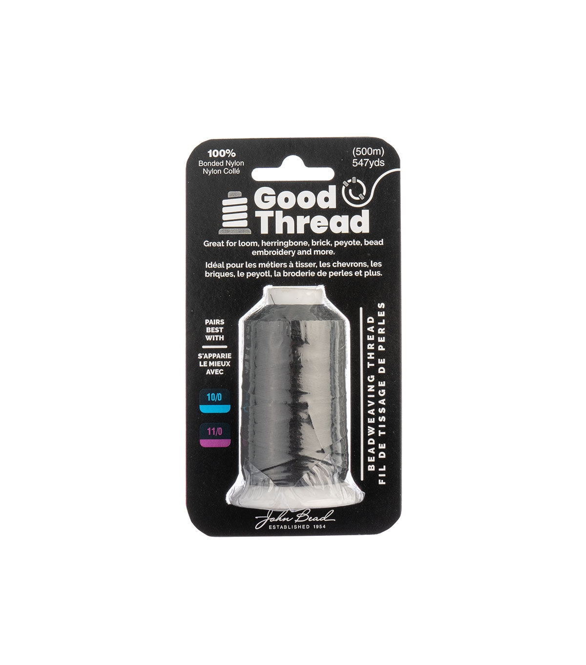 Good Thread by John Bead is a durable thread with a silky feel that resists tangles and fraying. Good Thread is great for fringe with its flowy texture and works beautifully in peyote stitch, square stitch, right angle weaves, herringbone, weaving on or off a loom or any one of the many other beading techniques. Ideal for use with John Bead Czech Seed Beads and John Bead Beading Gold Eye Needle.