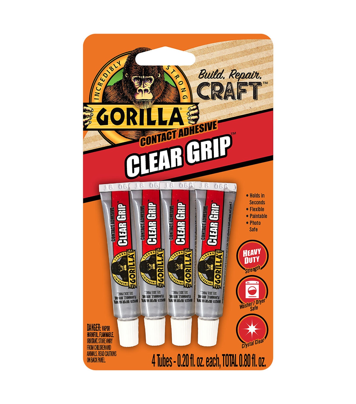 The Gorilla Clear Grip Contact Adhesives contain a flexible, fast-setting, crystal clear contact glue that creates a strong, permanent bond. This glue is paintable and waterproof, making it great for projects both indoor and outdoor. Build, create and repair with this heavy-duty glue.